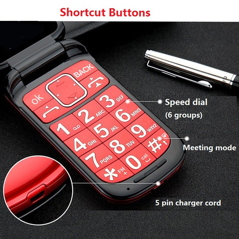 Le téléphone portable à clapet est équipé d'un haut-parleur puissant qui garantit un son clair et fort. Il dispose également d'une lampe torche à forte luminosité, facilement activable grâce à une touche dédiée. Son autonomie est assurée par une batterie de 2800mAh, vous offrant plusieurs jours d'utilisation normale. De plus, il est doté d'une fonction d'enregistrement automatique des appels, compatible avec une carte Micro SD.