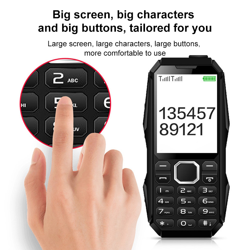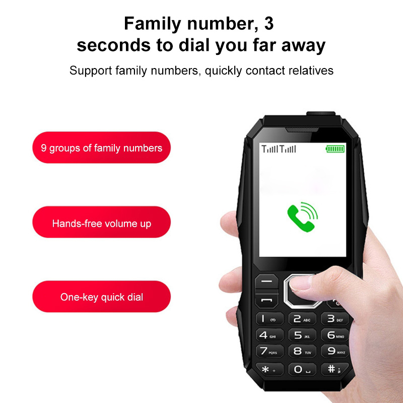 Ce téléphone étanche est fait pour les conditions extrêmes : chantiers, randonnées en terrain difficile... il est à la fois résistant aux chocs, étanche à l'eau et aux poussières, et doté d'une autonomie allant jusqu'à 16 heures en appel et jusqu'à 180 heures en veille. Il dispose également du support Dual SIM, d'une lampe torche puissance, et d'un appareil photo 0.3 MP.
