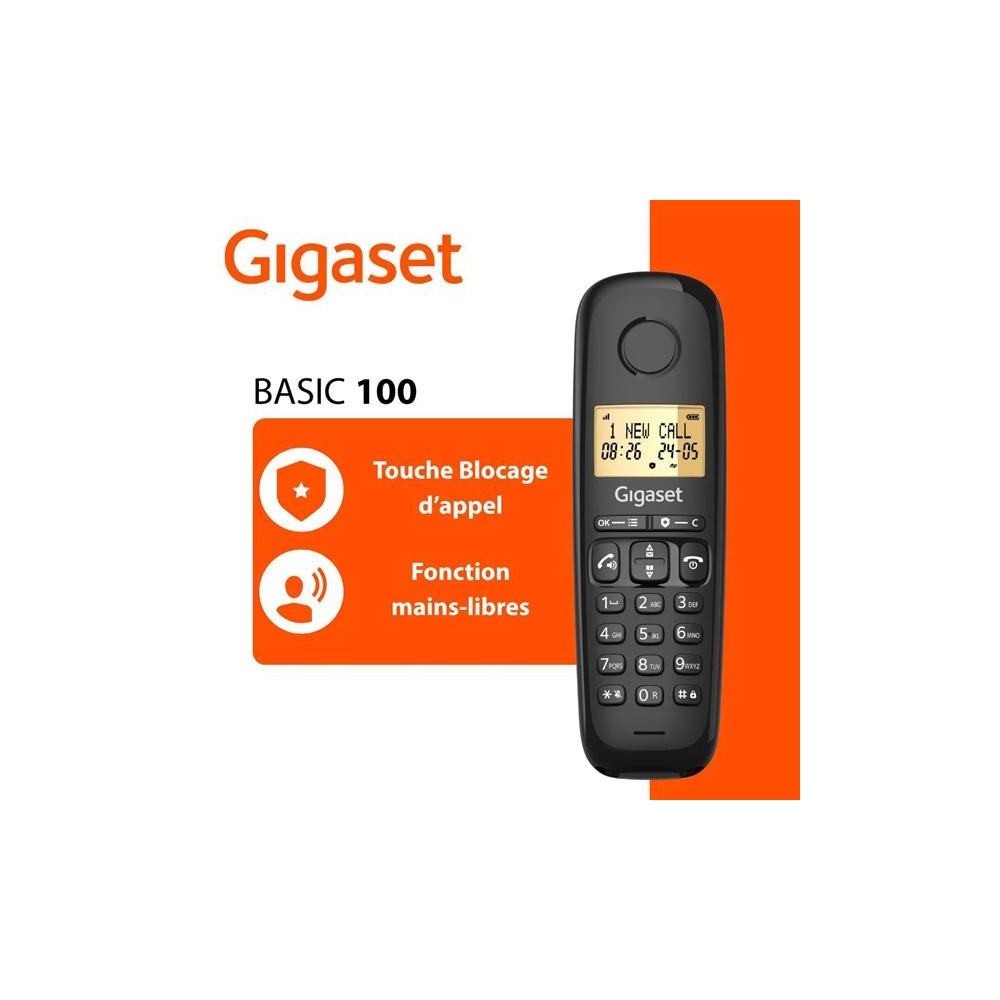 | Libellé | Téléphone sans fil noir basic 100 - BASIC100NOIR - gigaset |