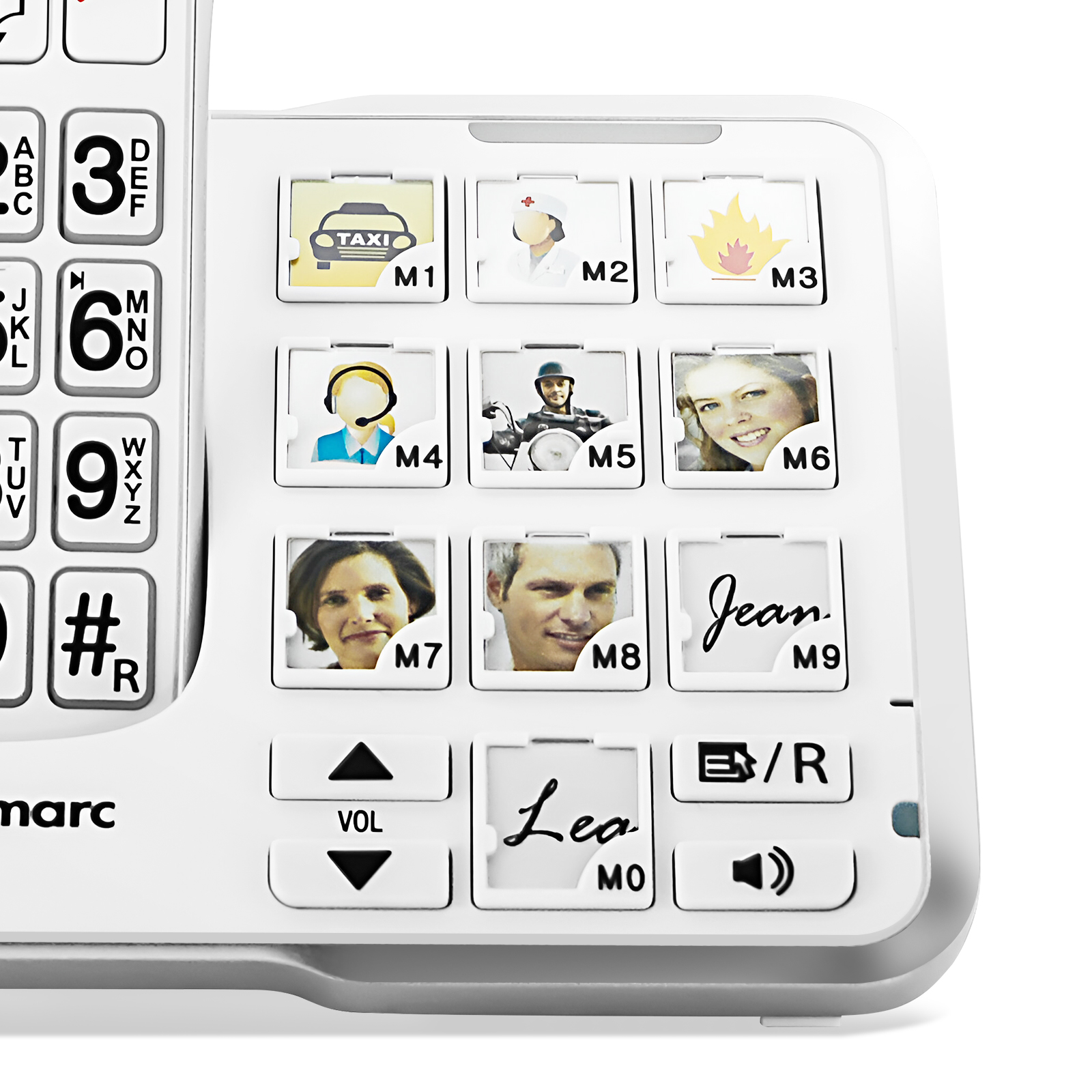 Le Geemarc Amplidect 595 Photo possède une touche d'urgence sur la tranche du combiné sans fil. En cas de situation délicate, il suffit de presser cette touche SOS pour déclencher un appel d'urgence vers 4 numéros, préenregistrés en amont. Le premier contact d'urgence sera appelé et en cas de non réponse, le second sera appelé et ainsi de suite jusqu'à ce qu'un des contacts réponde.