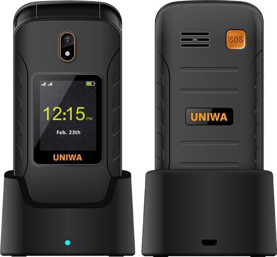 Vous recherchez un téléphone pour seniors avec de grandes touches, un son amplifié, des caractères agrandis et un bouton SOS ? Alors le téléphone pour seniors Uniwa V909T est fait pour vous. Le pack inclut également une station d’accueil (docking station) pour recharger le téléphone et l’installer facilement dans votre salon. Il s’agit d’un téléphone à clapet qui protège l’écran et les touches lorsqu’il est fermé. Téléphone à clapet, grandes touches et écran agrandi Clapet protecteur Le Uniwa V909T se replie pour protéger l’écran et les touches, tout en restant compact pour tenir dans une poche. Affichage et ergonomie Écran intérieur de 2,8 ", écran extérieur de 1,77 ", touches surdimensionnées et caractères agrandis, idéaux pour les malvoyants. Son renforcé Volume plus élevé pour entendre clairement chaque appel entrant. Avec docking station Le téléphone est livré avec une station d’accueil. Il suffit d’y poser le Uniwa V909T pour le recharger et le garder toujours bien visible dans votre pièce. Écran et appareil photo Écran intérieur : 2,8 " Écran extérieur : 1,77 " Appareil photo arrière : 0,3 MP Carte SIM 4G Compatible avec les réseaux 2G, 3G et 4G. Passez et recevez des appels, ainsi que des SMS, en toute simplicité. Fonction SOS Un bouton d’urgence permet d’appeler automatiquement jusqu’à 5 numéros programmés en boucle jusqu’à décrochement. Envoi possible d’un SMS d’urgence. Pensez à configurer et tester cette fonction à l’avance. Connectiques Nano SIM Port micro‑USB pour recharge et transfert de données Bluetooth 2.1 Système et batterie OS : ThreadX, conçu pour être simple et intuitif pour les seniors Batterie : 2 250 mAh, amovible et remplaçable Fonctions additionnelles : radio FM, alarme, calendrier, calculatrice, VoLTE, lecteur e‑book, numérotation rapide, lampe torche Contenu du pack : Uniwa V909T, batterie, chargeur, manuel d’utilisation et station d’accueil. Astuce : retirez le sticker de la batterie avant la première mise en marche.
