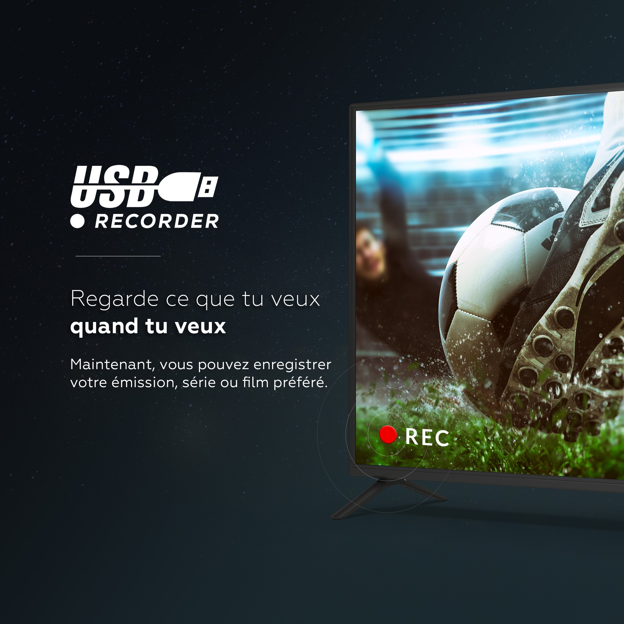 La fonction PVR permet d'enregistrer n'importe quel programme TV par simple pression d'un bouton, même lorsque le téléviseur est en mode veille, et de le stocker sur une clé USB connectée au port du téléviseur. Outre les programmes précédemment enregistrés, le téléviseur peut lire tous les types de contenus multimédias stockés sur cette clé USB.