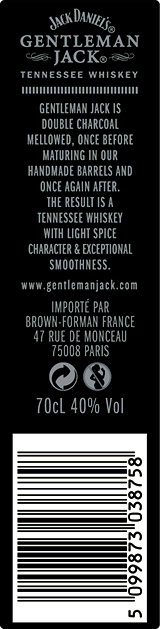 | Libellé | Tennessee Whiskey Jack Daniel's Gentleman Jack - Etats-Unis, 40% vol. - 70 cl |
