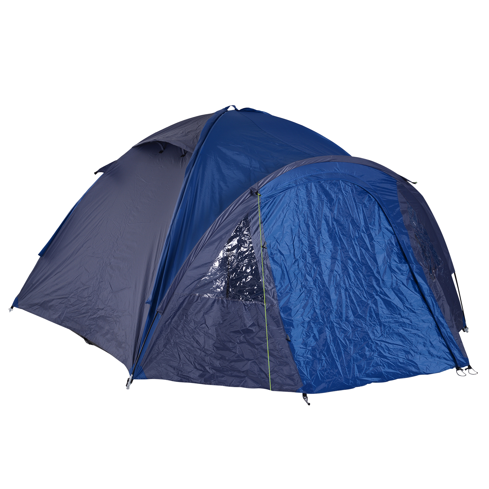 Libellé Tente de camping familiale 4-5 personnes montage facile double porte et fenêtres dim. 3L x 2,50l x 1,30H m fibre verre polyester bleu marine