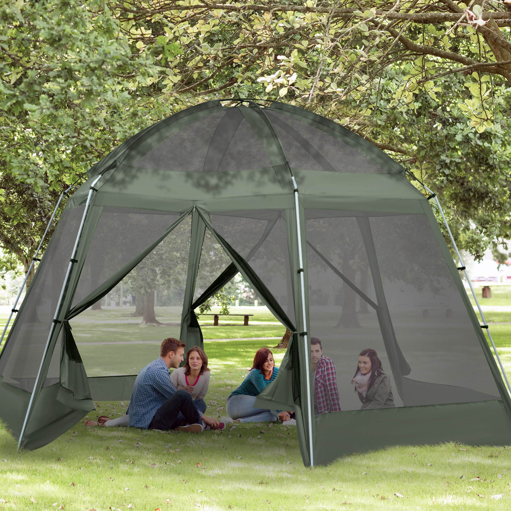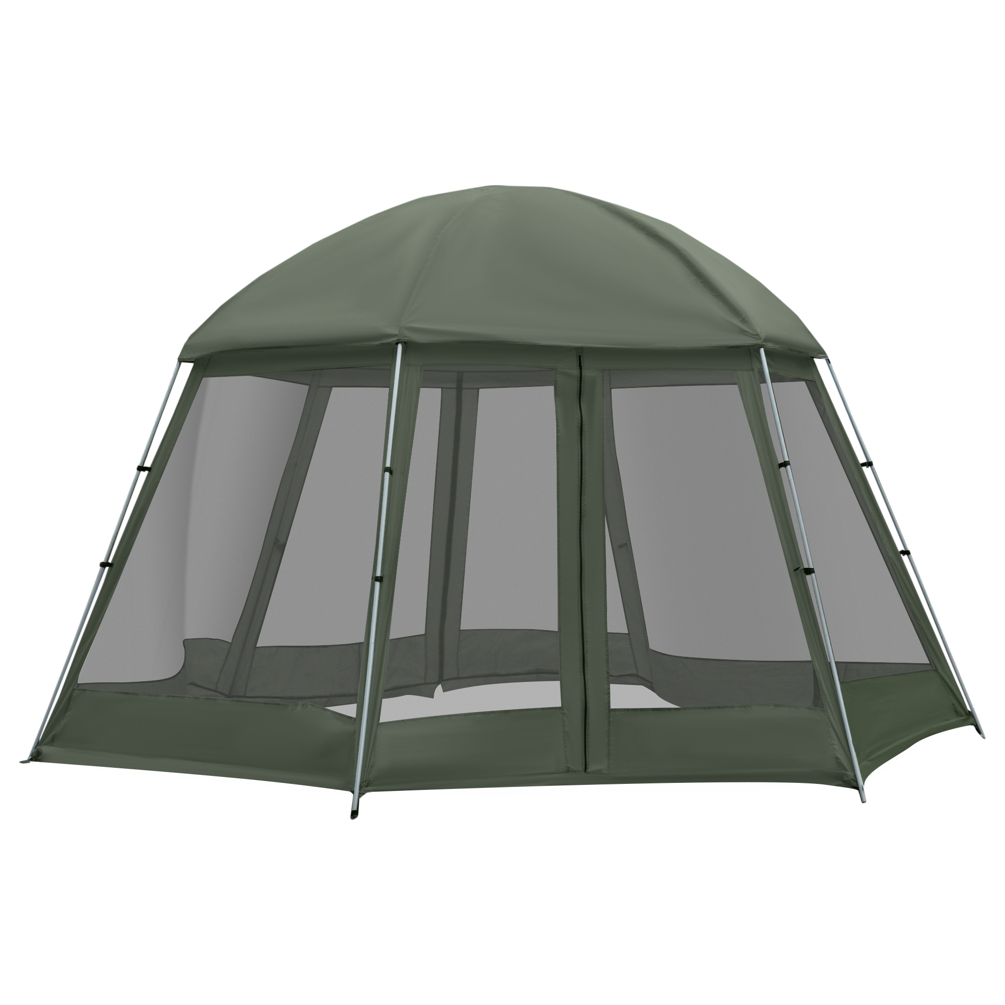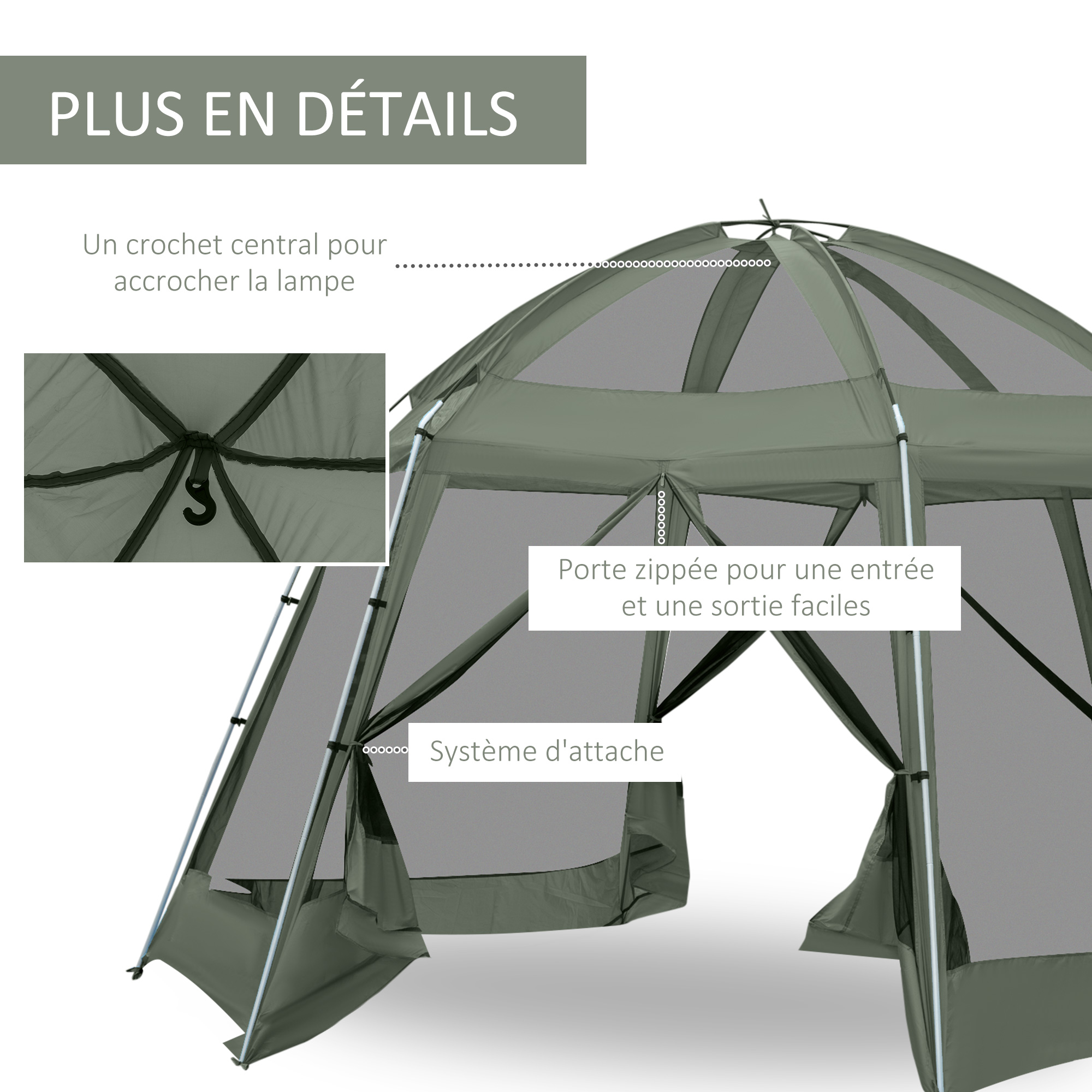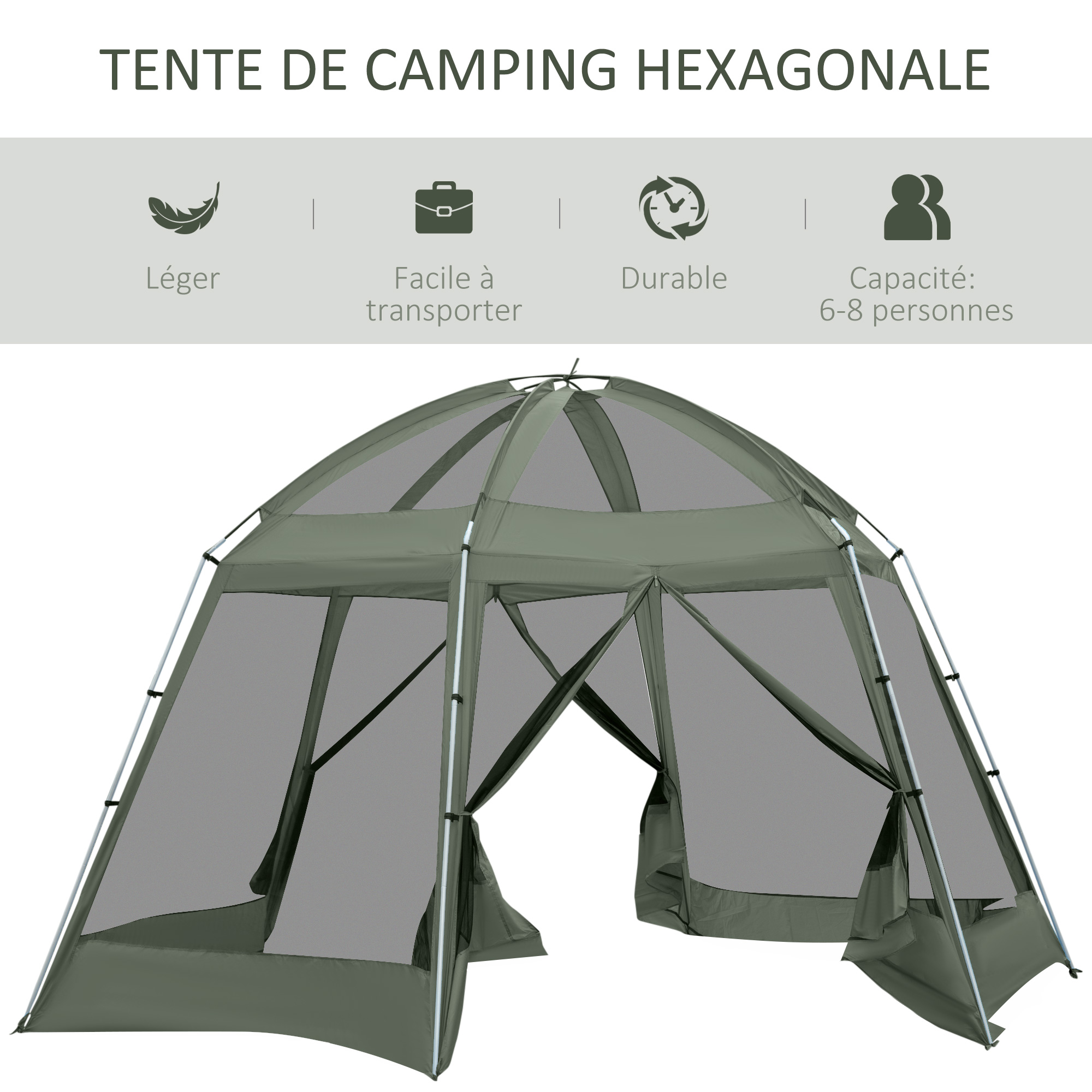 Libellé Tente de camping familiale 6-8 personnes - tente hexagonale - avec sac de transport et piquets de sol - dim. 493L x 493L x 240H cm fibre verre polyes