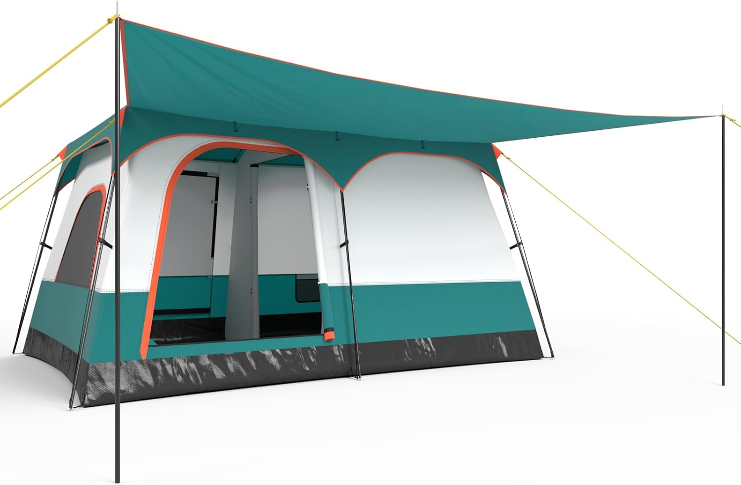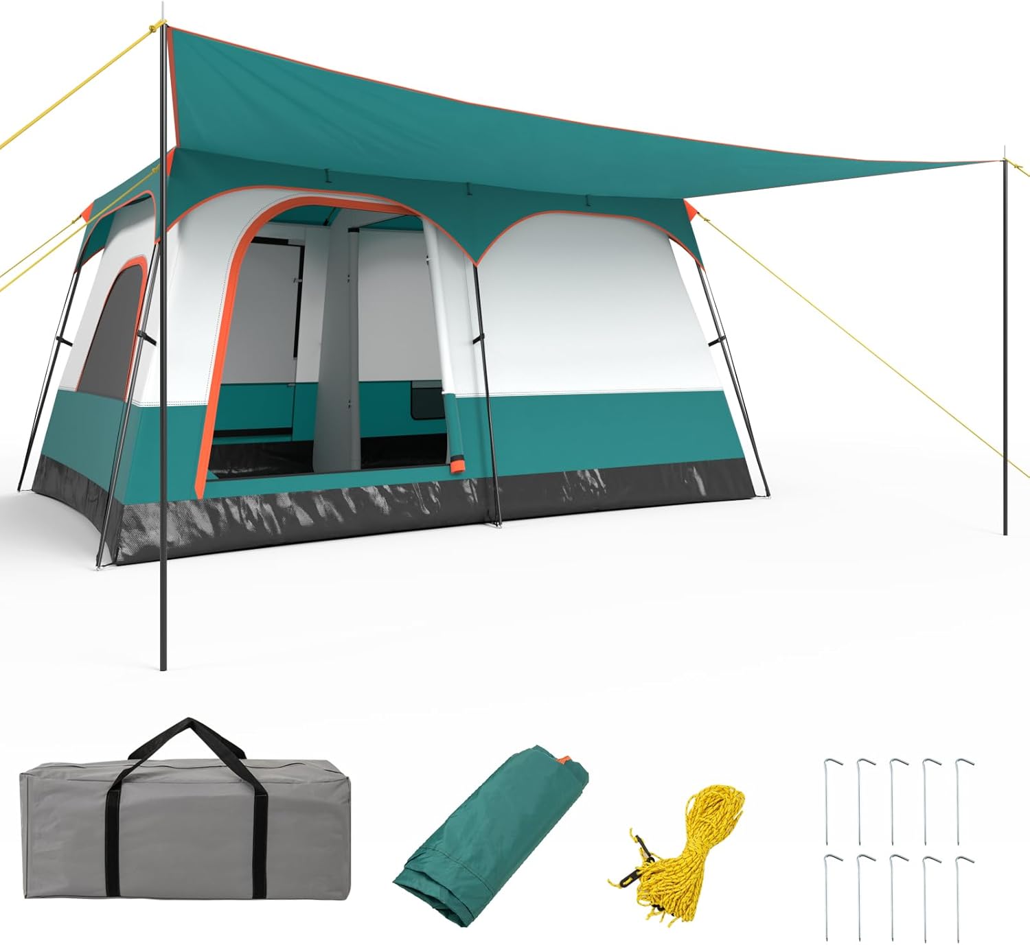 Tente de camping grande familial pour 4-10 personnes avec auvent, grande tente de camp imperméable