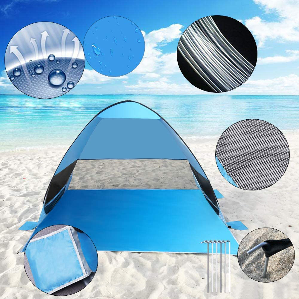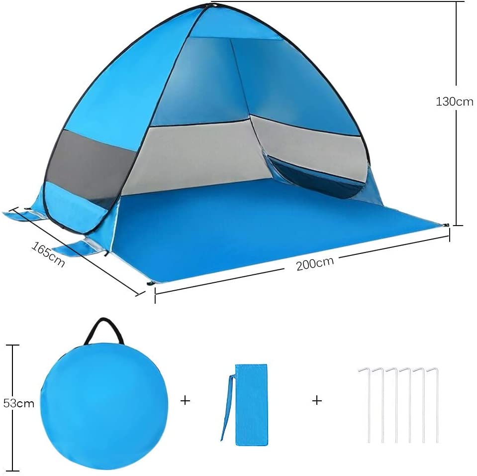 - CARACTÉRISTIQUES : Une tente large pour toute la famille avec un design créatif. Elle est prévue pour 3 adultes ou 5 enfants. Tente avec une grande capacité et une excellente ventilation. Trois fenêtres à mailles très fines accélèrent la circulation de l'air. FACILE À UTILISER : Aucun assemblage requis, la tente instantanée peut être installée automatiquement en quelques secondes. ANTI-UV : Fabriqué à partir de matériau étanche à la protection contre les UV, parfaite pour protéger sa peau du soleil. Munies de 6 piquets, vous pourrez les planter pour une bonne stabilité, dans un sol dur. Sur la plage, vous pourrez utiliser les poches sur les côtés pour y mettre du sable ou des cailloux pour la stabiliser.