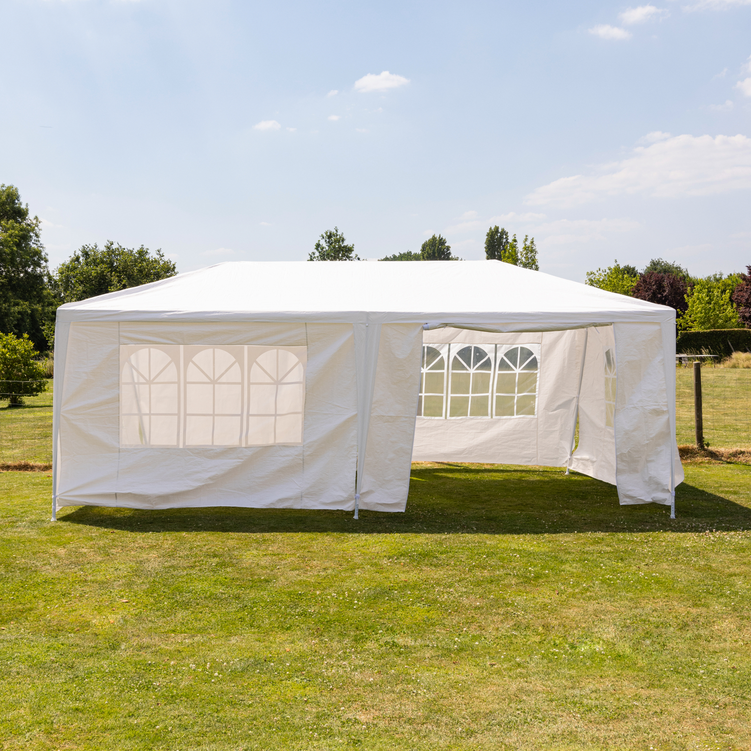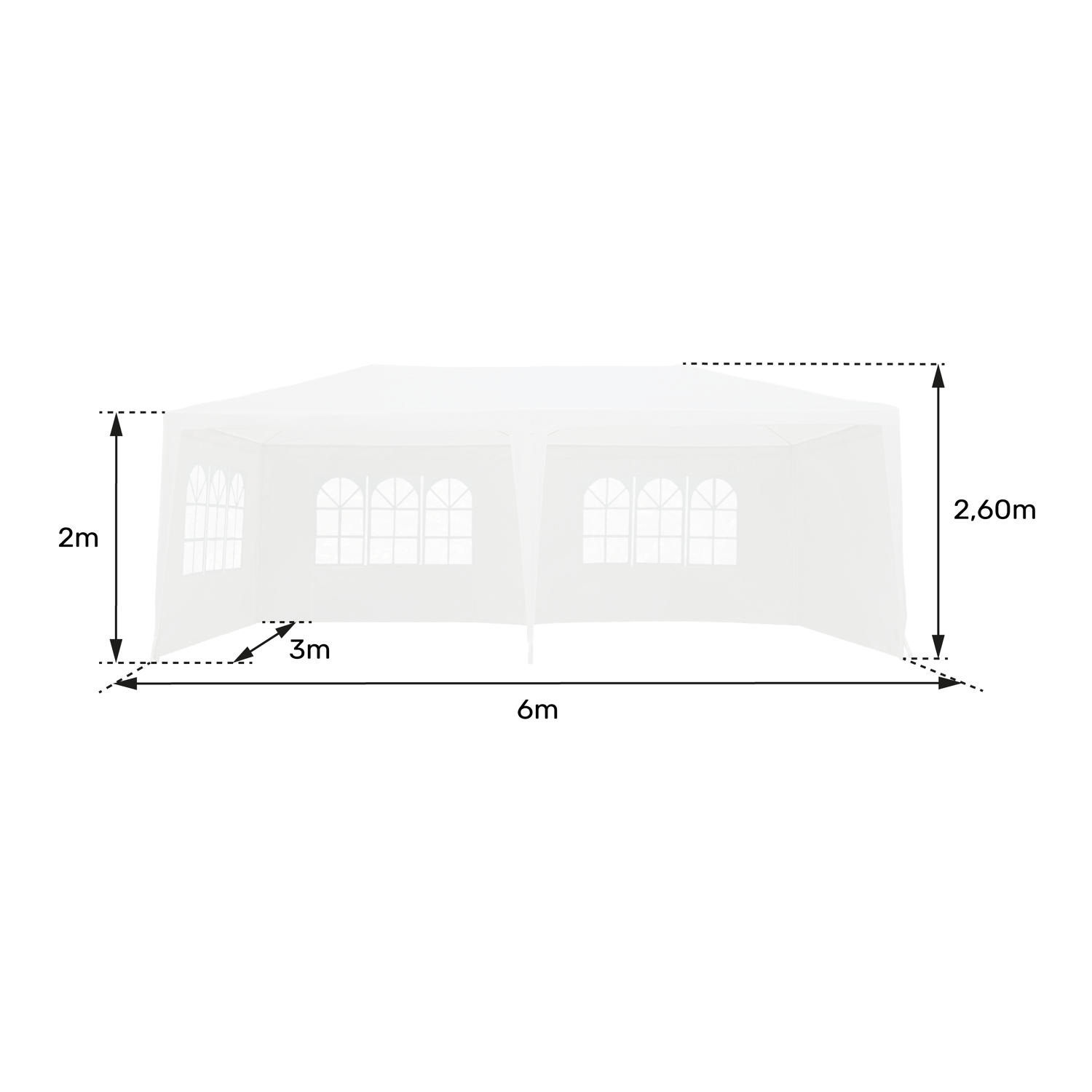 Avec ses dimensions de 3x6m, la tente de réception protège du soleil, et permet à vos convives de profiter du buffet sans s'en soucier. Solide avec son système d'ancrage efficace et esthétique avec ses fenêtres stylisées, cette tente vous assure la réussite de vos grands événements à moindre coût !