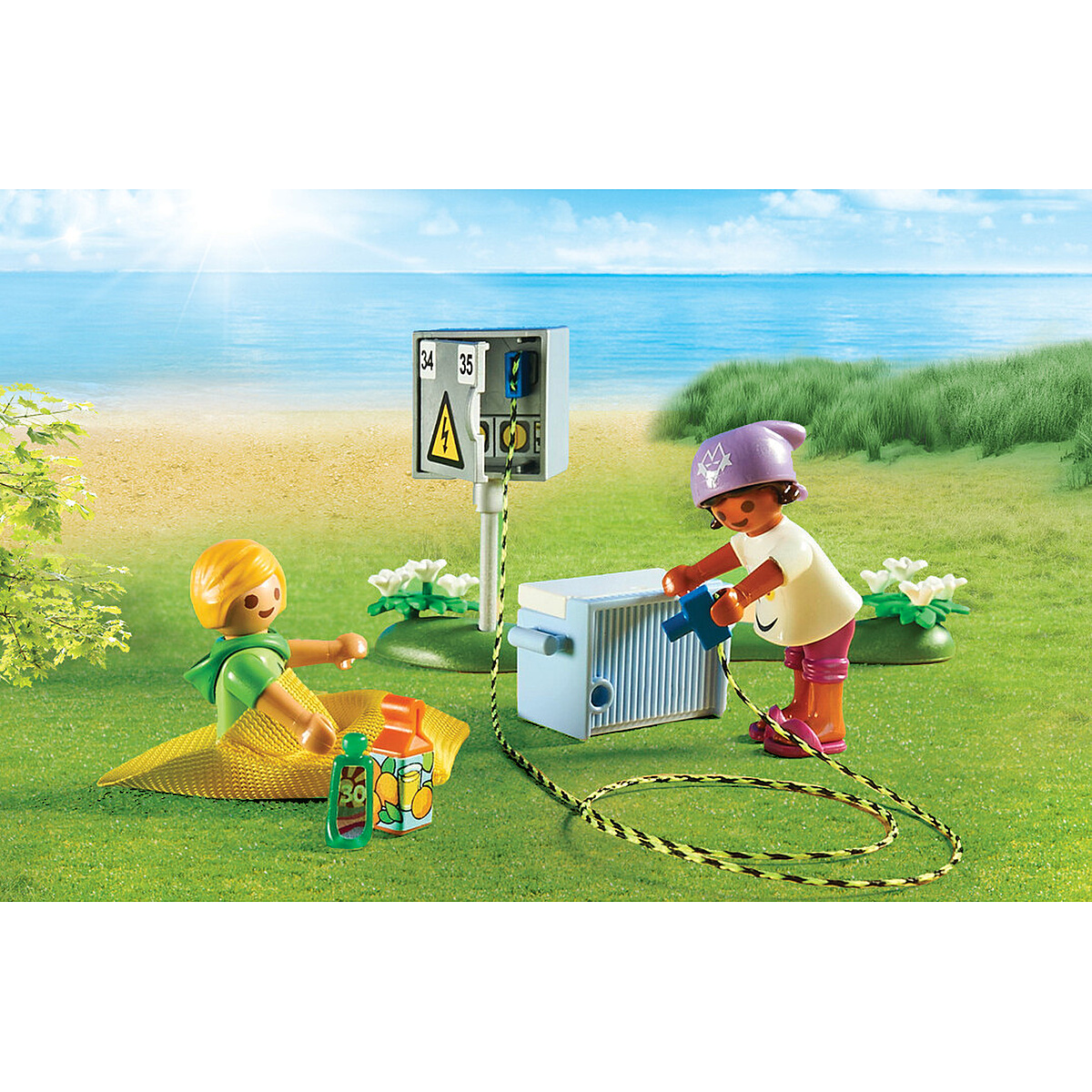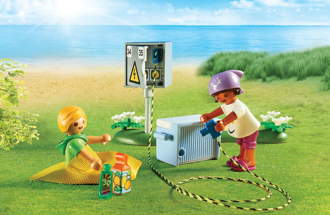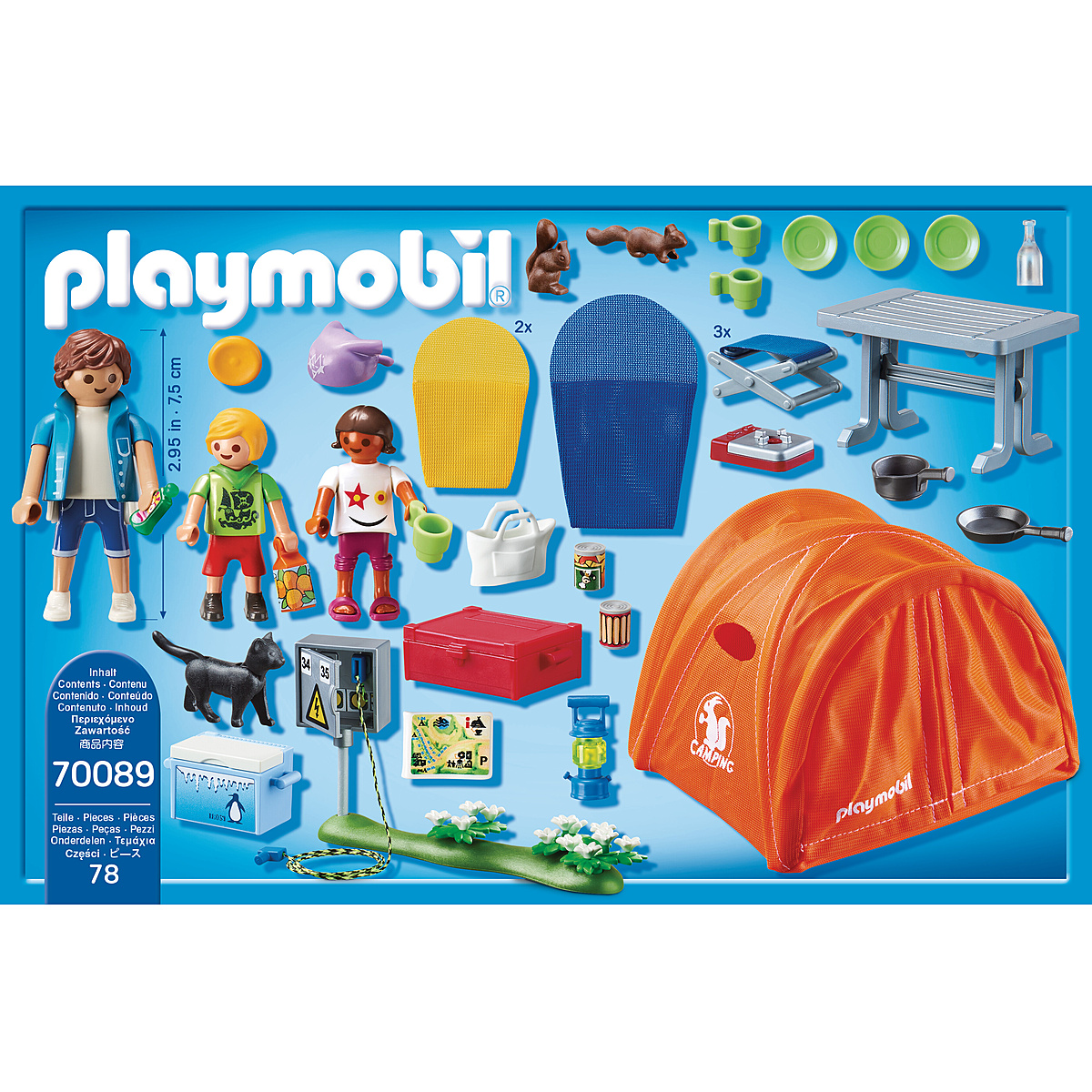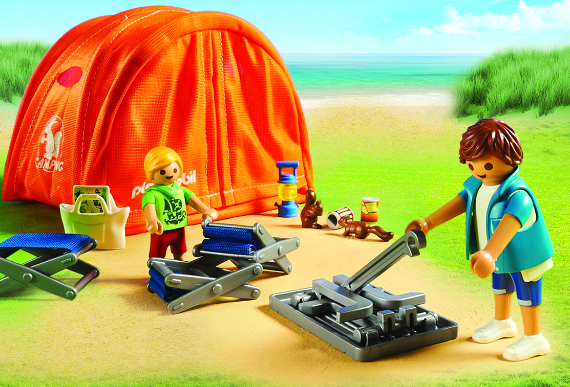 Les enfants ont décidé de dormir à la belle étoile ! La tente se replie et offre suffisamment d'espace pour accueillir les trois personnages. Avec table de camping, tabourets et de nombreux accessoires