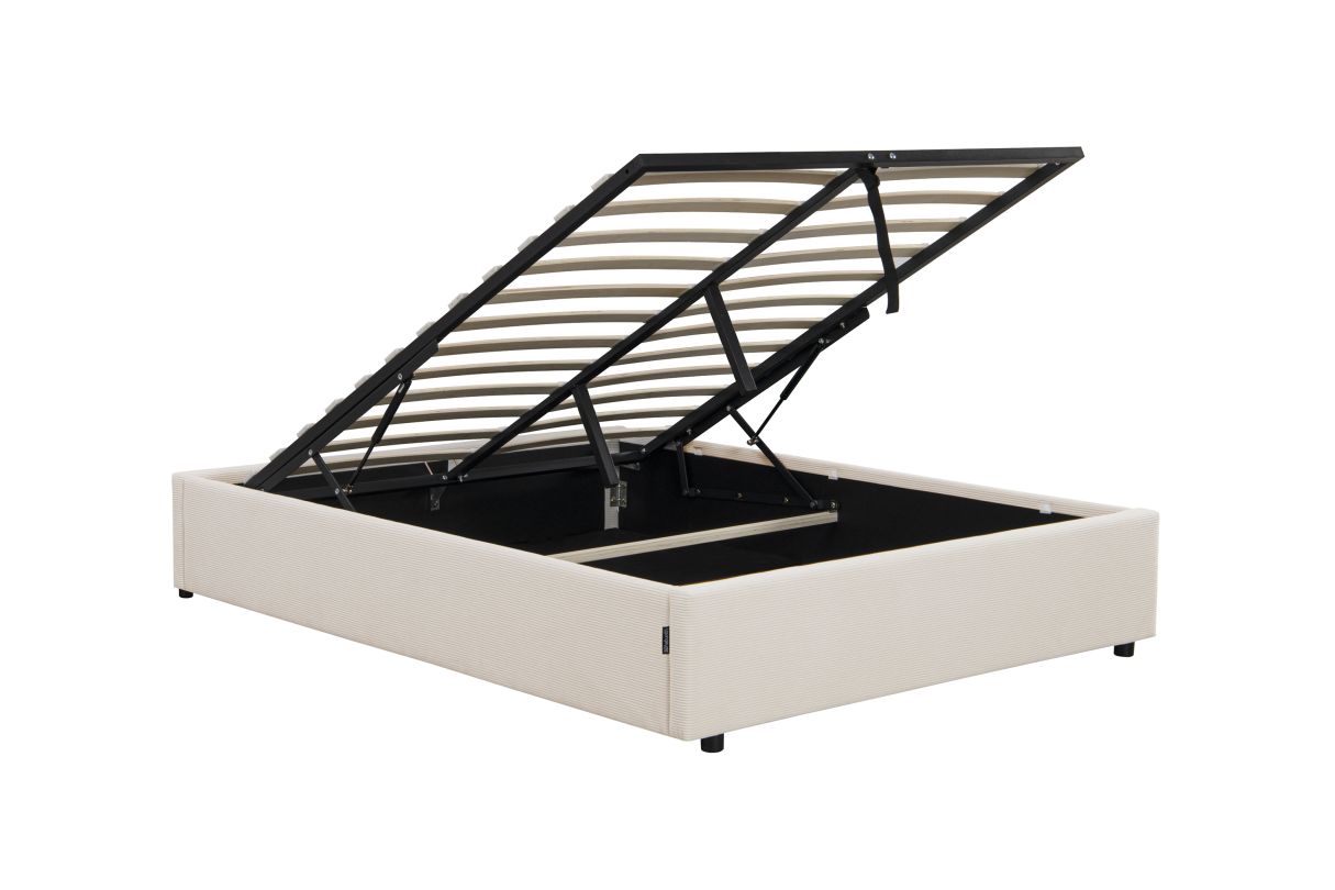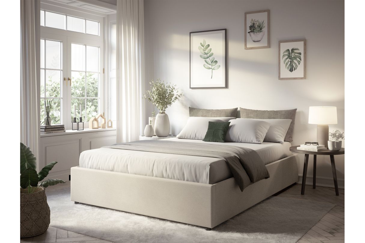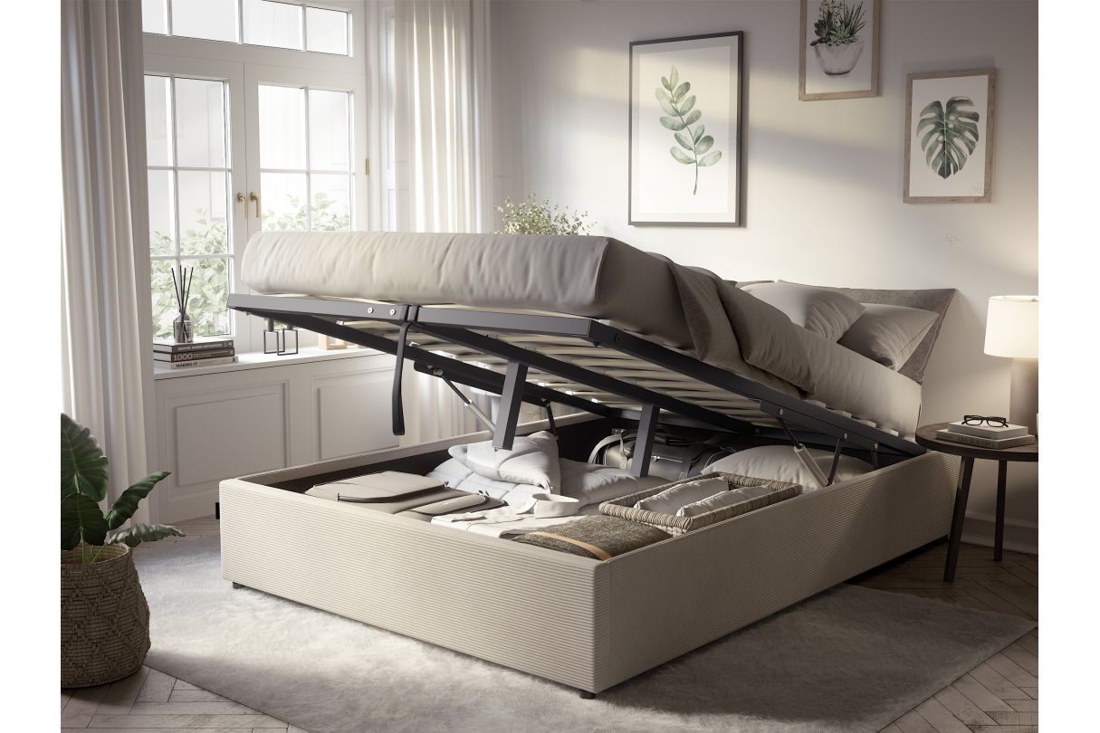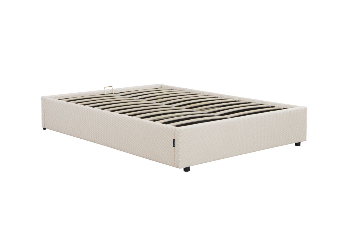 TEO - Cadre de lit avec coffre de rangement en velours côtelé - Beige - 160 x 200 cm