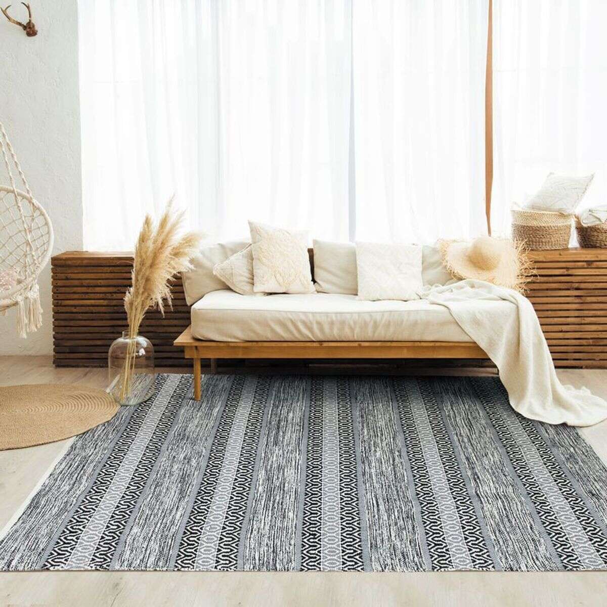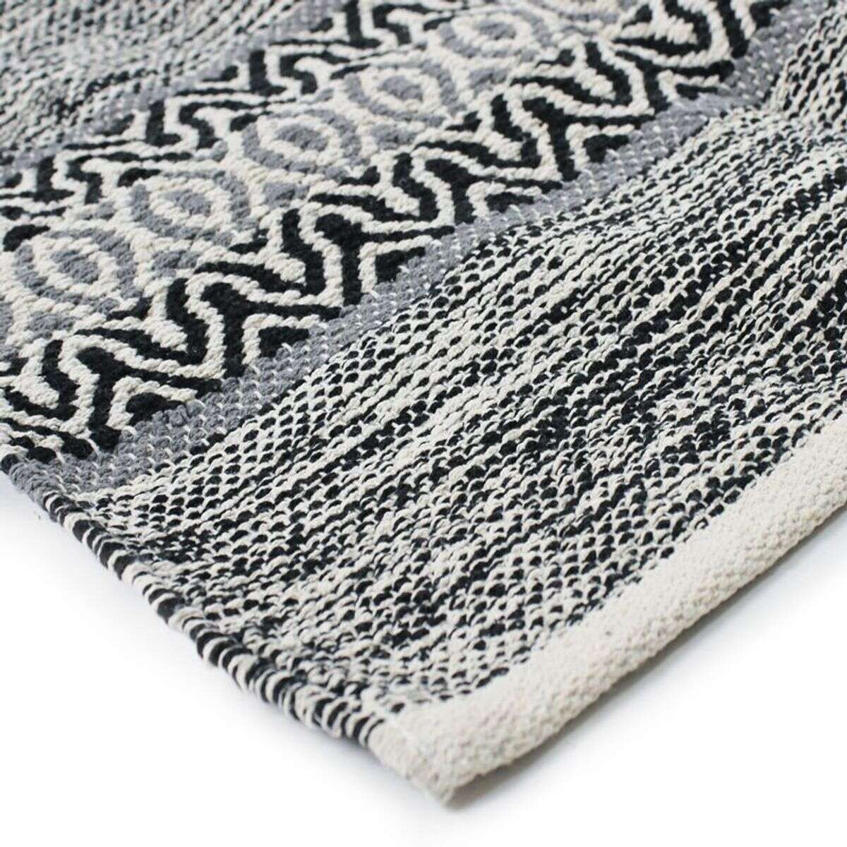 TERRA COTTON ETHNO - Tapis en coton esprit ethnique noir et blanc 160x230