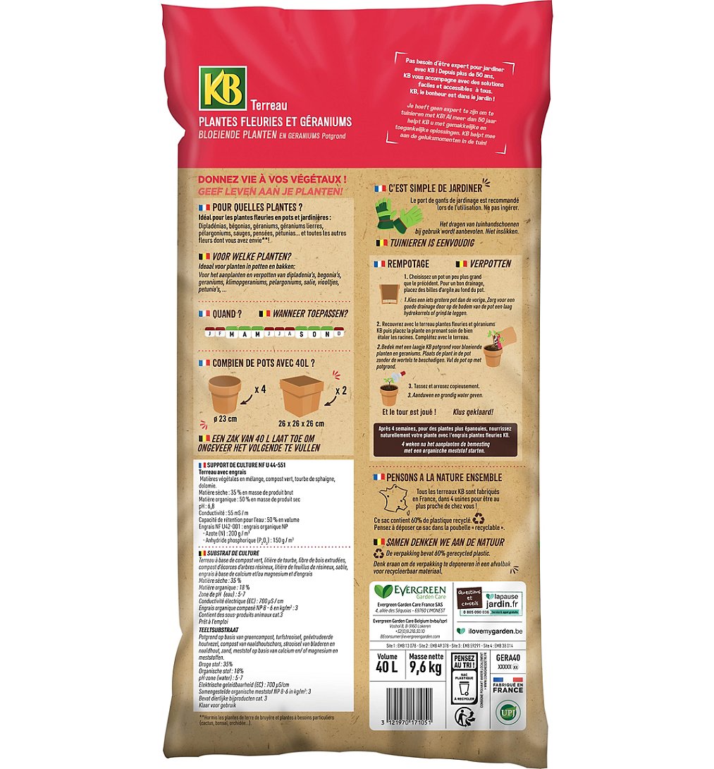 Libellé Terreau plantes fleuries géranium UAB 40L