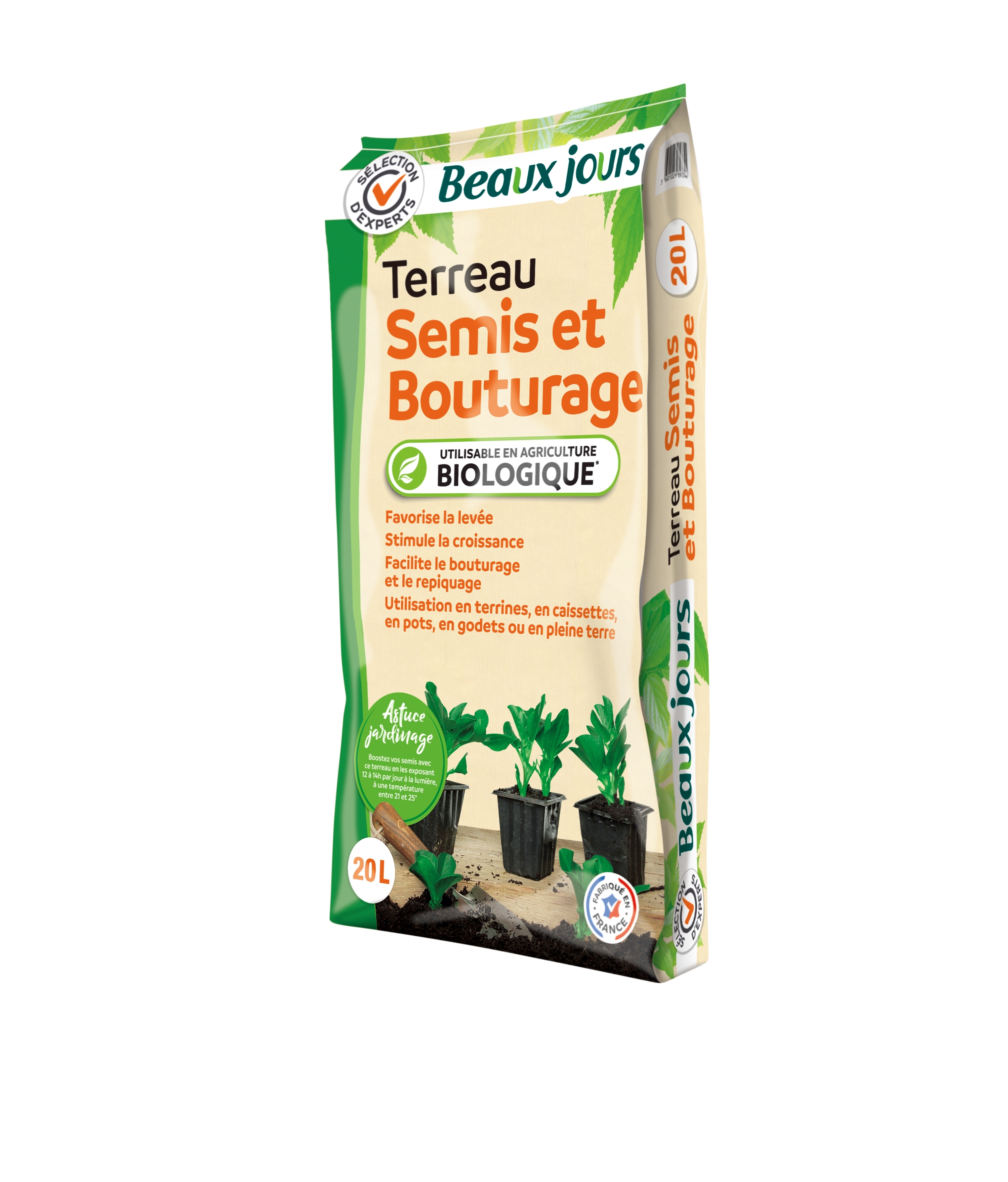 Terreau semis et bouturage UAB 20L - Sélection d'Experts - Beaux Jours - Favorise la levée et stimule la croissance - Idéal pour semis, bouturage et repiquage - Utilisation en terrines, caissettes, pots, godets ou en pleine terre - Utilisable en Agriculture Biologique