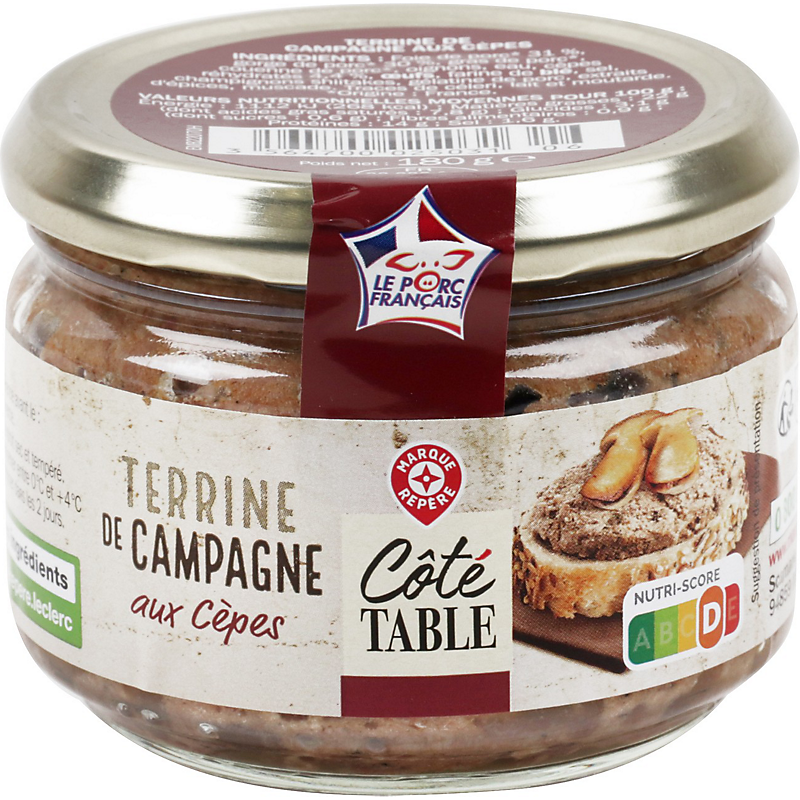 Foie de porc* 31 %, gorge de porc* 30 %, gras de porc*, couenne de porc*, oignons, eau, cèpes réhydratés 4,4 %, œufs, farine de blé, sel, champignons shiitakes, gélatine de porc, extraits d'épices, muscade. Traces de céleri, lait et moutarde. *Origine : France.