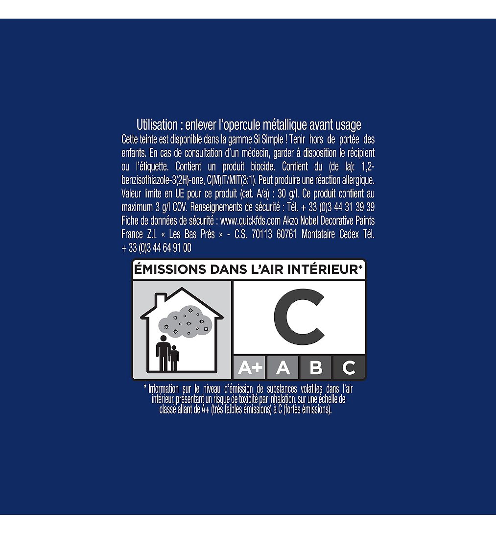 | Avertissements | Conforme à la DIRECTIVE 2004/42/CE relative à la réduction des émissions de composés organiques volatils |