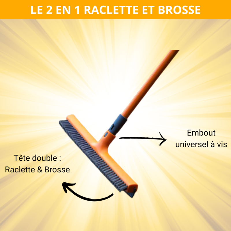 - La brosse 2 en 1 Raclette et Brosse est l'outil idéal pour nettoyer vos vitres et fenêtres avec efficacité. Son design 2 en 1 vous permet d'utiliser la brosse pour nettoyer les surfaces et la raclette pour éliminer l'eau, vous faisant gagner du temps et augmentant l'efficacité du nettoyage. Grâce à son embout universel à vis, elle s'adapte facilement à un manche classique, et son manche télescopique vous permet d'atteindre les surfaces élevées sans effort. Que ce soit pour vos fenêtres, vos portes de douche ou même vos parebrises de voiture, cette brosse multifonction vous offre des résultats impeccables. Les poils rigides de la brosse éliminent efficacement les taches tenaces, tandis que la raclette évacue l'eau en un geste. Ajoutez cette bros