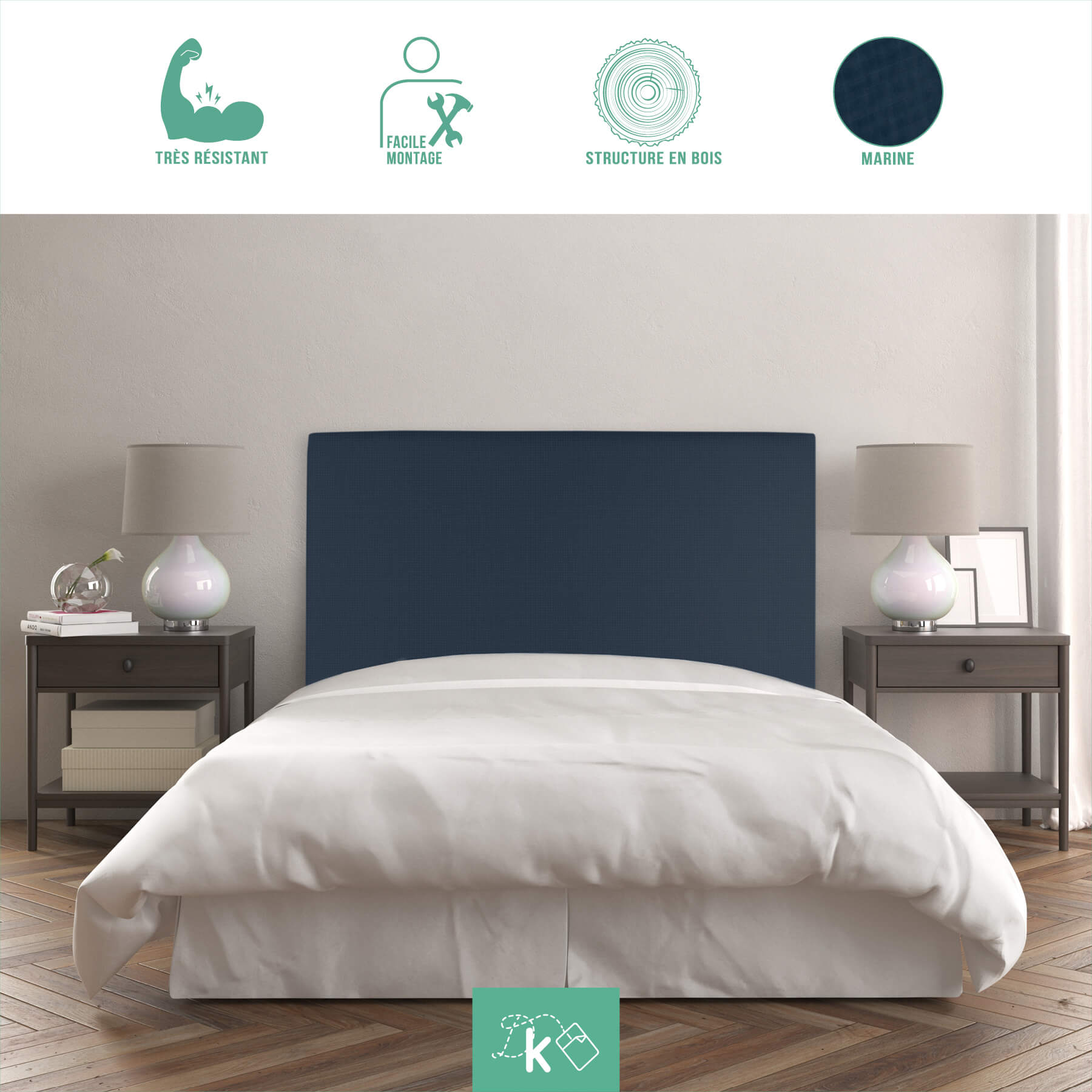 | Libellé | Tête de lit Noa |Tissu Romer 115x120 cm|Lit 105cm|Couleur marine |