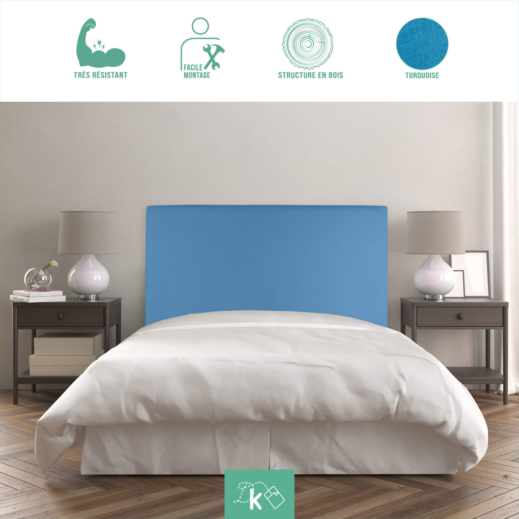 | Libellé | Tête de lit Noa |Tissu Romer 115x60 cm |Lit 105cm|Couleur turquoise |
