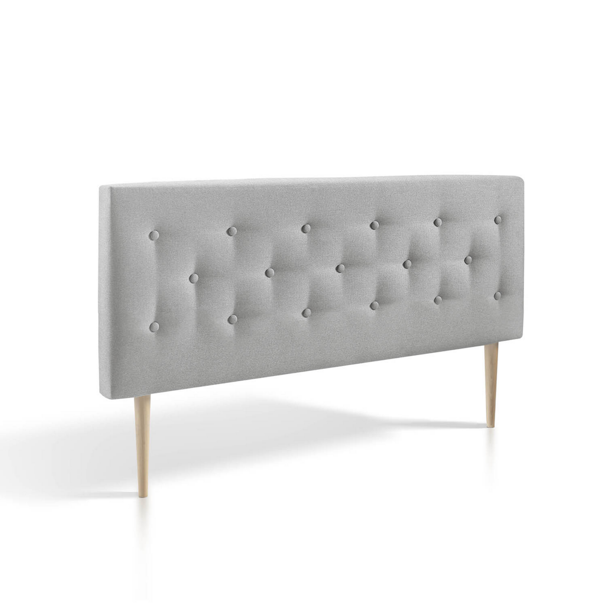 •Tapissée en gris avec capitonné de la même couleur. •Pieds de style nordique en hêtre naturel. •Structure rigide de contreplaqué qui allège le poids de la tête de lit pour l'ancrer au mur facilement. •Rembourrage en mousse HR de la partie frontale et coins. •Planche arrière en tissus transpirant couleur noir. •Inclut ancrage pour mur. •L'épaisseur totale est de 8 cm. •Hauteur totale avec pieds 100 cm. •MADE IN SPAIN.