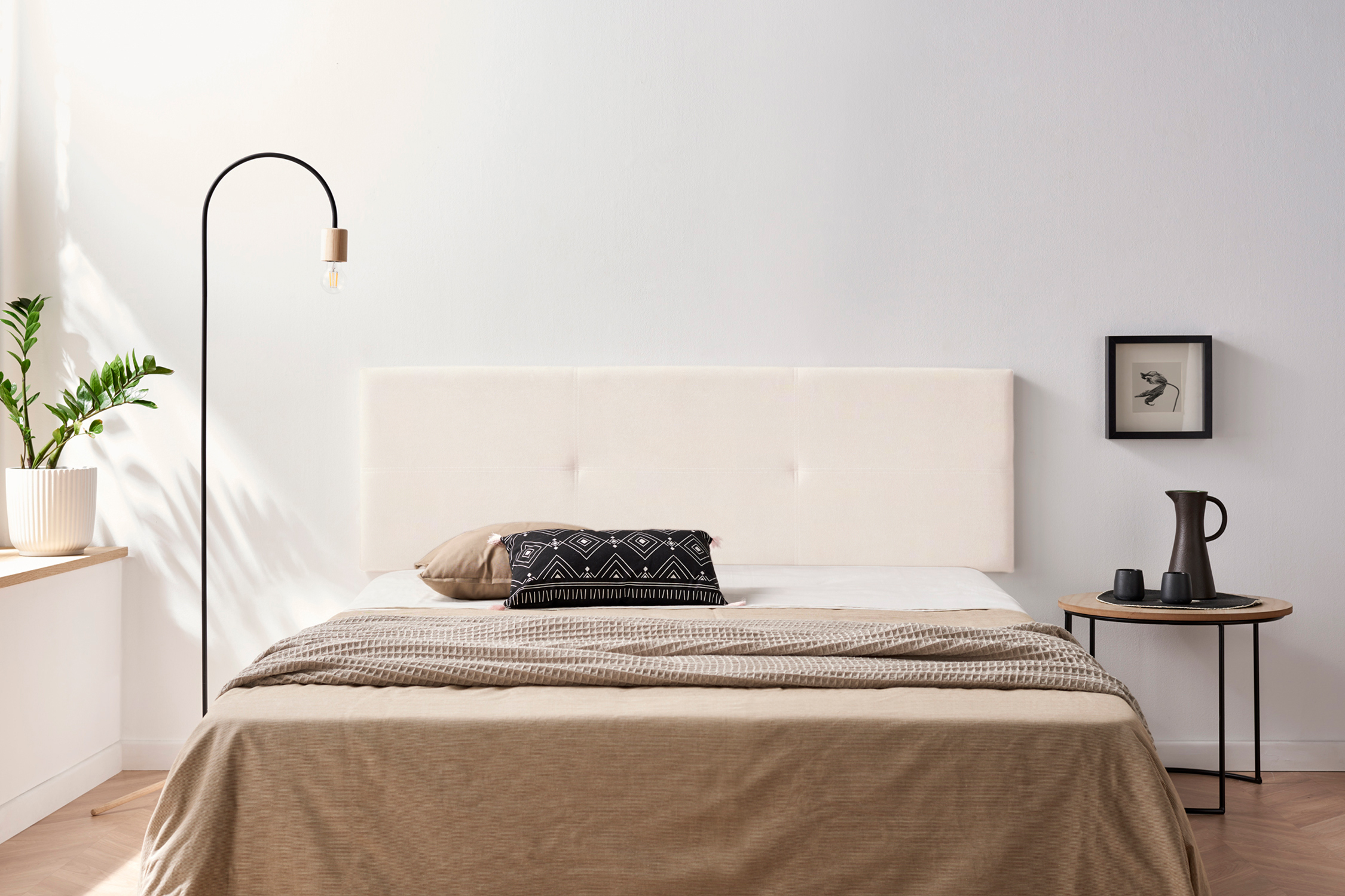 Tête de lit en tissu avec double couture qui donne une touche à la fois moderne urbaine à votre chambre.
