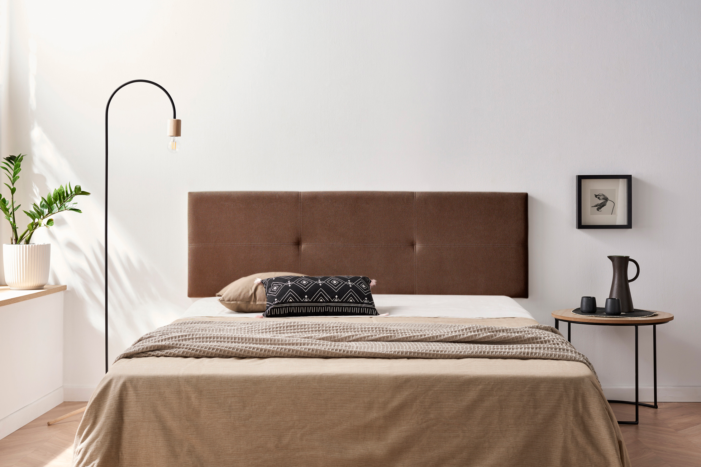 Tête de lit en tissu avec double couture qui donne une touche à la fois moderne urbaine à votre chambre.