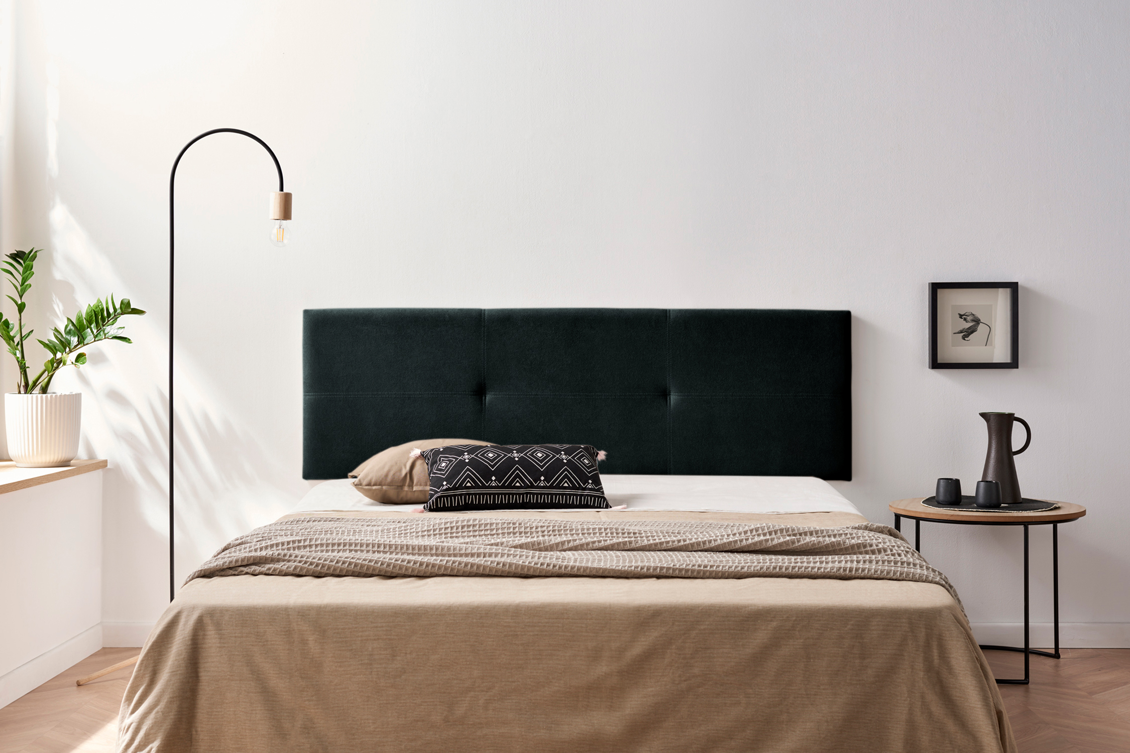 Tête de lit en tissu avec double couture qui donne une touche à la fois moderne urbaine à votre chambre.