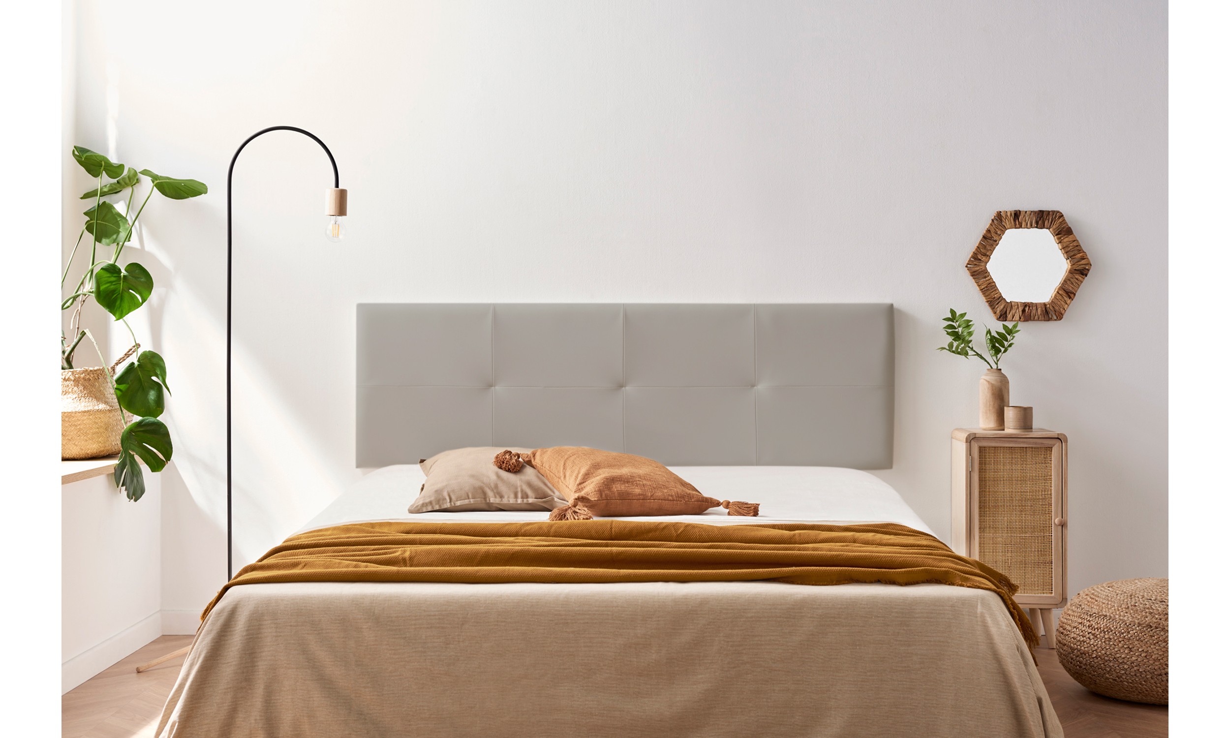 Tête de Lit Tapisée ALTEA Simili cuir - 160 x 50 cm - Gris Clair - Moonia