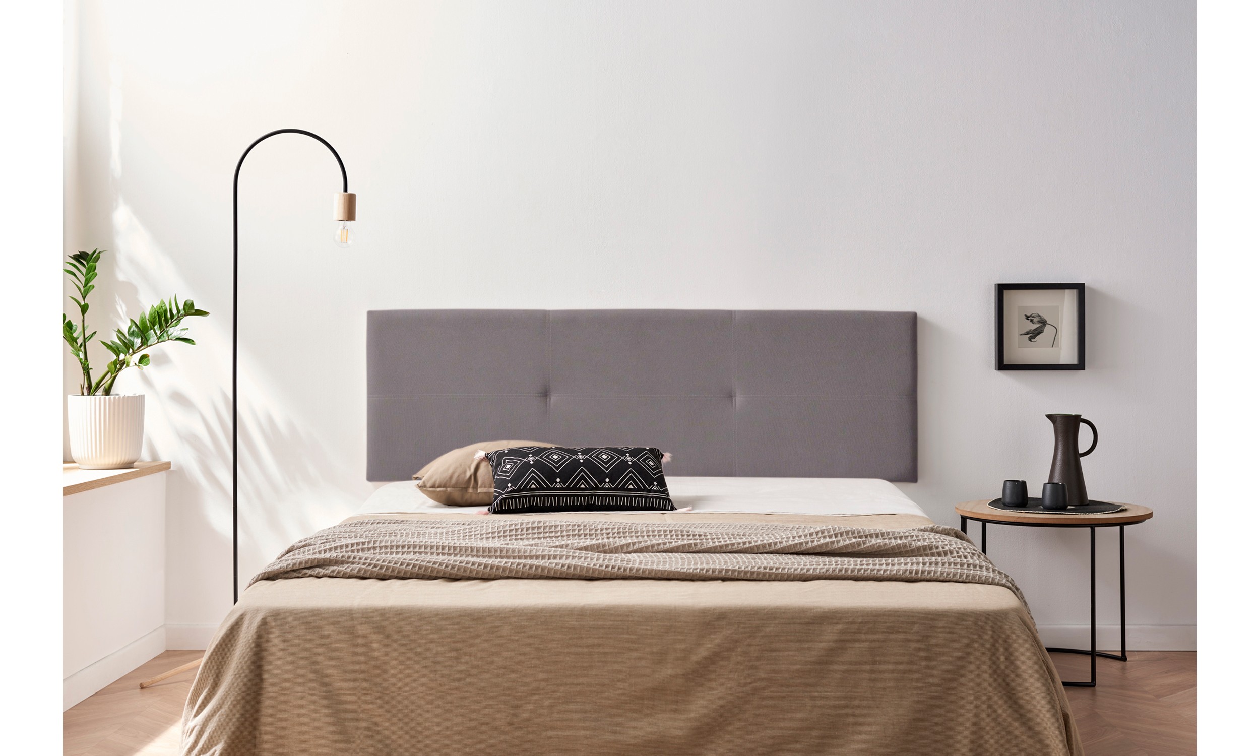 Tête de lit en tissu avec double couture qui donne une touche à la fois moderne urbaine à votre chambre.