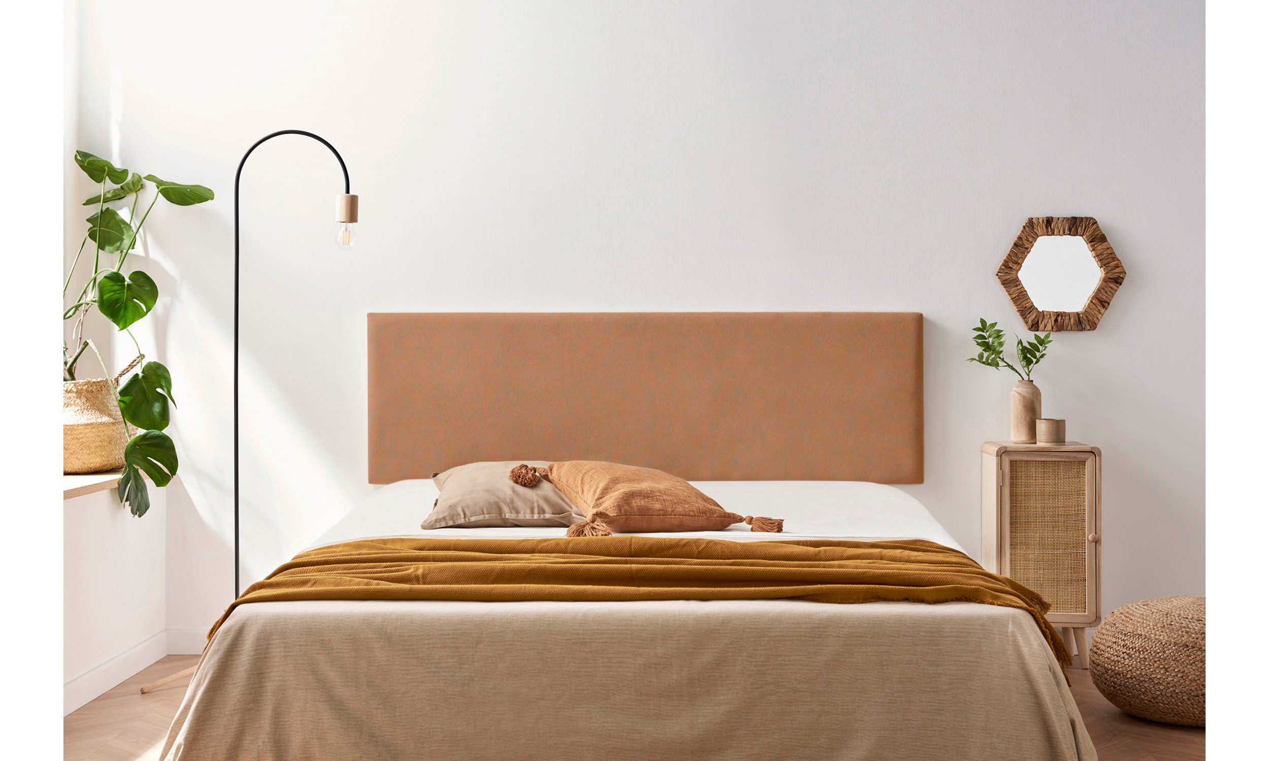 C'est une tête de lit au tissu sobre donnera une touche minimaliste à votre chambre.