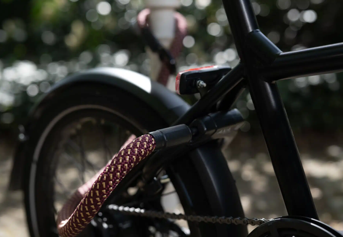 Cet antivol "MATE" s'adapte à tous les antivols de cadre standard. Vous pouvez ainsi combiner la chaîne d'insertion en tissu avec presque tous les antivols de cadre.