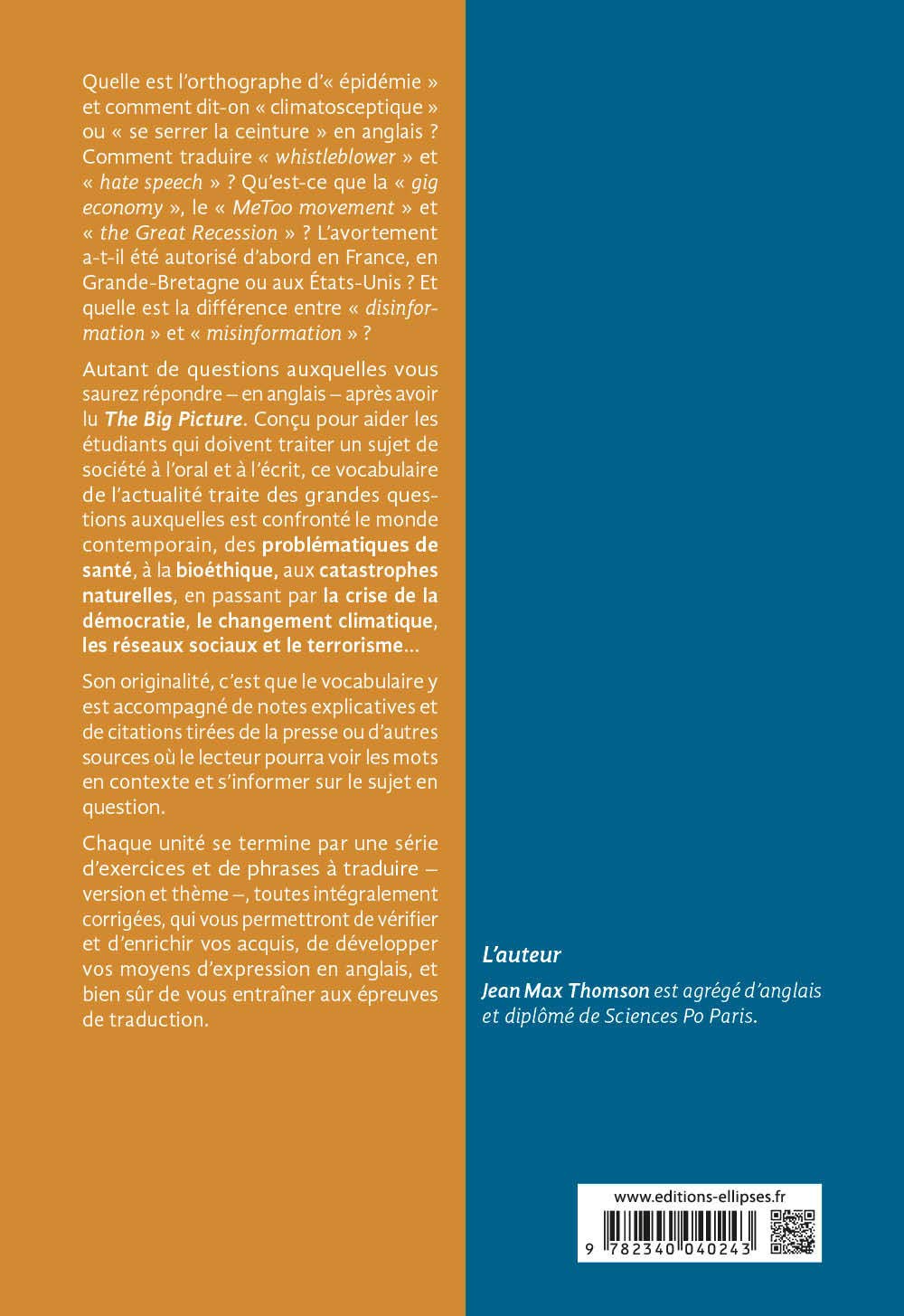 Cette nouvelle édition de The Big Picture propose tout le vocabulaire de l’anglais de l’actualité, avec :