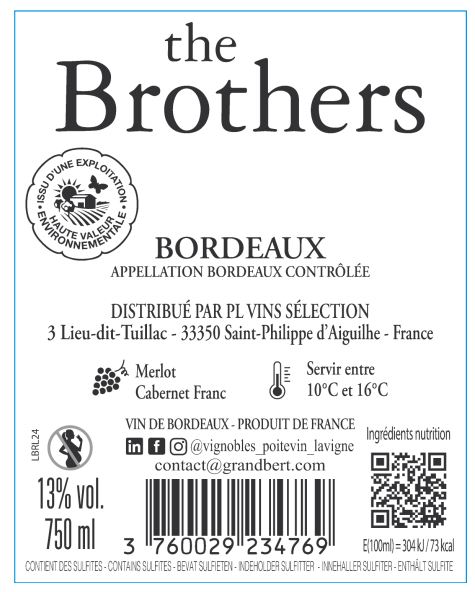 | Libellé | The brothers , 2024 - Bordeaux AOP - Rouge - 75 cl |