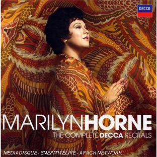 On pourrait penser qu'il ne reste pas grand-chose qui n'ait été réédité en CD au sein des catalogues des grandes firmes. Et pourtant, le CD va fêter ses vingt-cinq ans, mais les amateurs de lyrique attendaient toujours la réédition des enregistrements de MARILYN HORNE, la plus grande mezzo-soprano de l'histoire du XXè siècle ! Mezzo-soprano, c'est un raccourci. En fait, c'est comme contralto qu'elle débute en 1954. Mais de 1957 à 1960, elle part en Allemagne et chante des rôles de ... soprano lyrique : Mimi dans la Bohème, Simon Boccanegra, Onéguine ou Wozzeck. De retour au Etats-Unis, elle passe avec une incroyable aisance du soprano au contralto. L'invraisemblable étendu de sa tessiture n'est pas la seule de ses qualités : Marylin Horne possède un timbre exceptionnel, particulièrement chaud et velouté. C'est à San Francisco que Richard Bonynge, qui cherche une partenaire pour sa femme Joan Sutherland, la remarque et l'embauche immédiatement.
