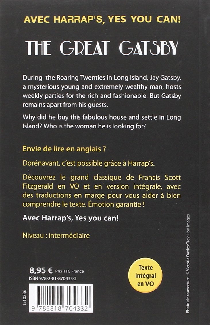 Découvrez le grand classique de Francis Scott Fitzgerald en VO et en version intégrale, avec des traductions en marge pour vous aider à bien comprendre le texte. Émotion garantie !