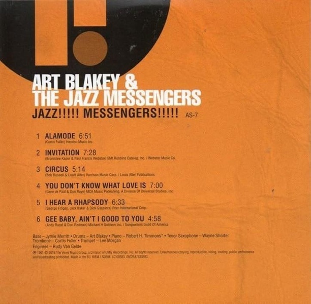 | Liste des pistes | 1.1 . alamode - Art Blakey Jazz Messengers 1.2 . invitation - Art Blakey Jazz Messengers 1.3 . circus - Art Blakey Jazz Messengers 1.4 . you don't know what love is - Art Blakey Jazz Messengers 1.5 . i hear a rhapsody - Art Blakey Jazz Messengers 1.6 . gee baby, ain't i good to you - Art Blakey Jazz Messengers |