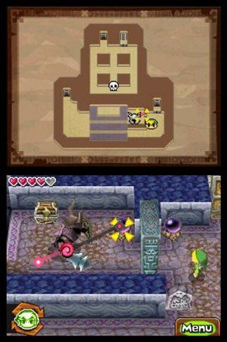 The Legend of Zelda : Spirit Tracks est un jeu d'action/aventure sur Nintendo DS. Suivant ses prédécesseurs au design cartoonesque, ce jeu vous emmène non plus en bateau mais en train à travers de nouvelles aventures. Au programme : des donjons, des boss dont il faudra repérer les points faibles, et surtout une armure ambulante que vous pourrez diriger à la pointe de votre stylet pour résoudre des énigmes et combattre de nombreux ennemis !