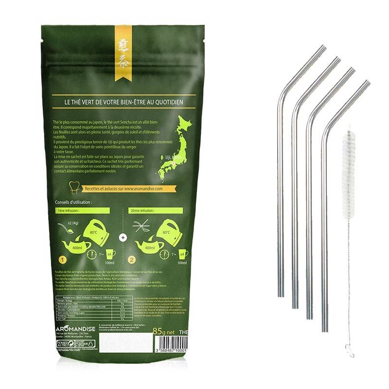 | Libellé | Thé vert Bio Sencha japonais + 4 pailles en inox |