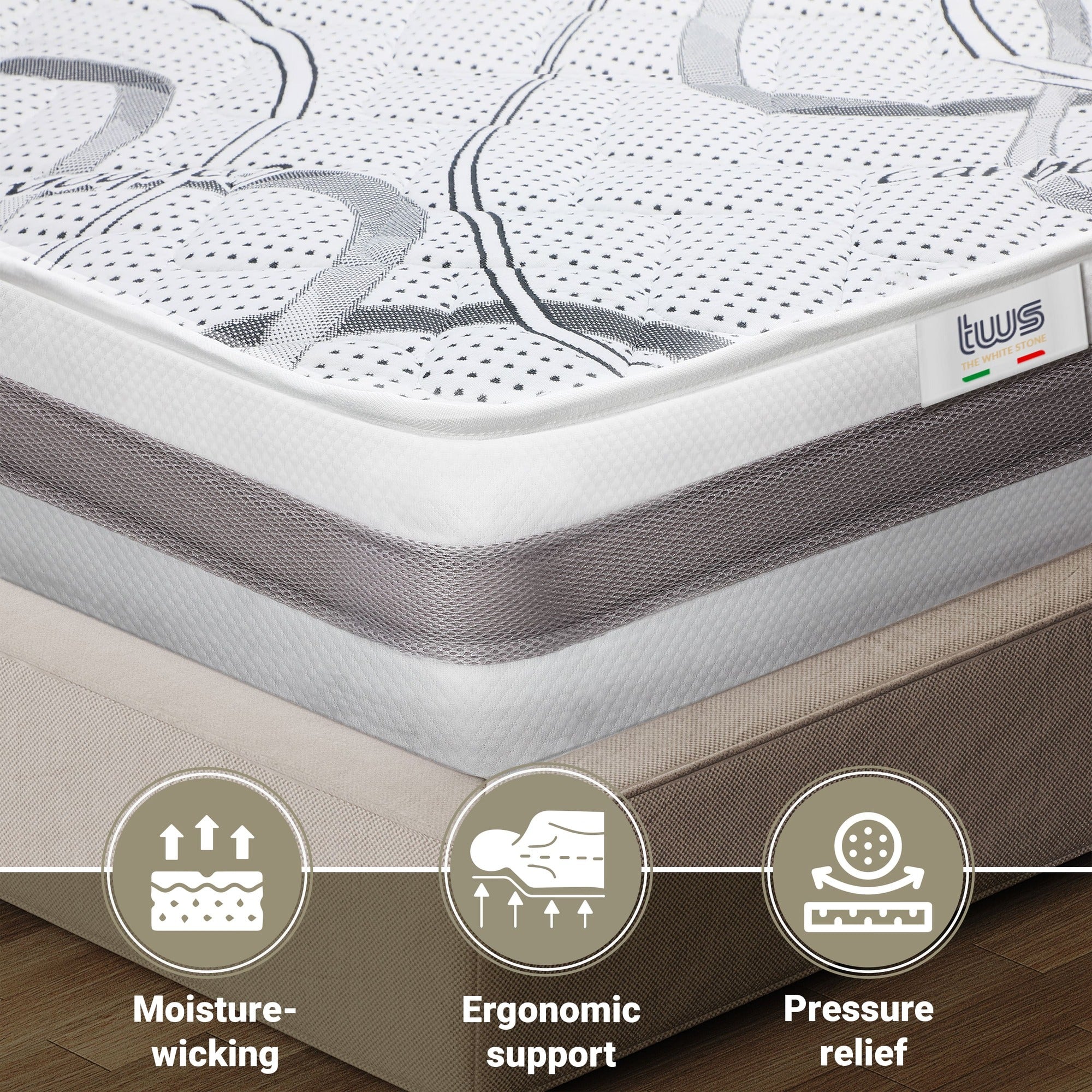 The White Stone Matelas Orthopédique 100x160 cm Fermeté Moyenne | Hauteur 20 cm | Tissu Hypoallergénique