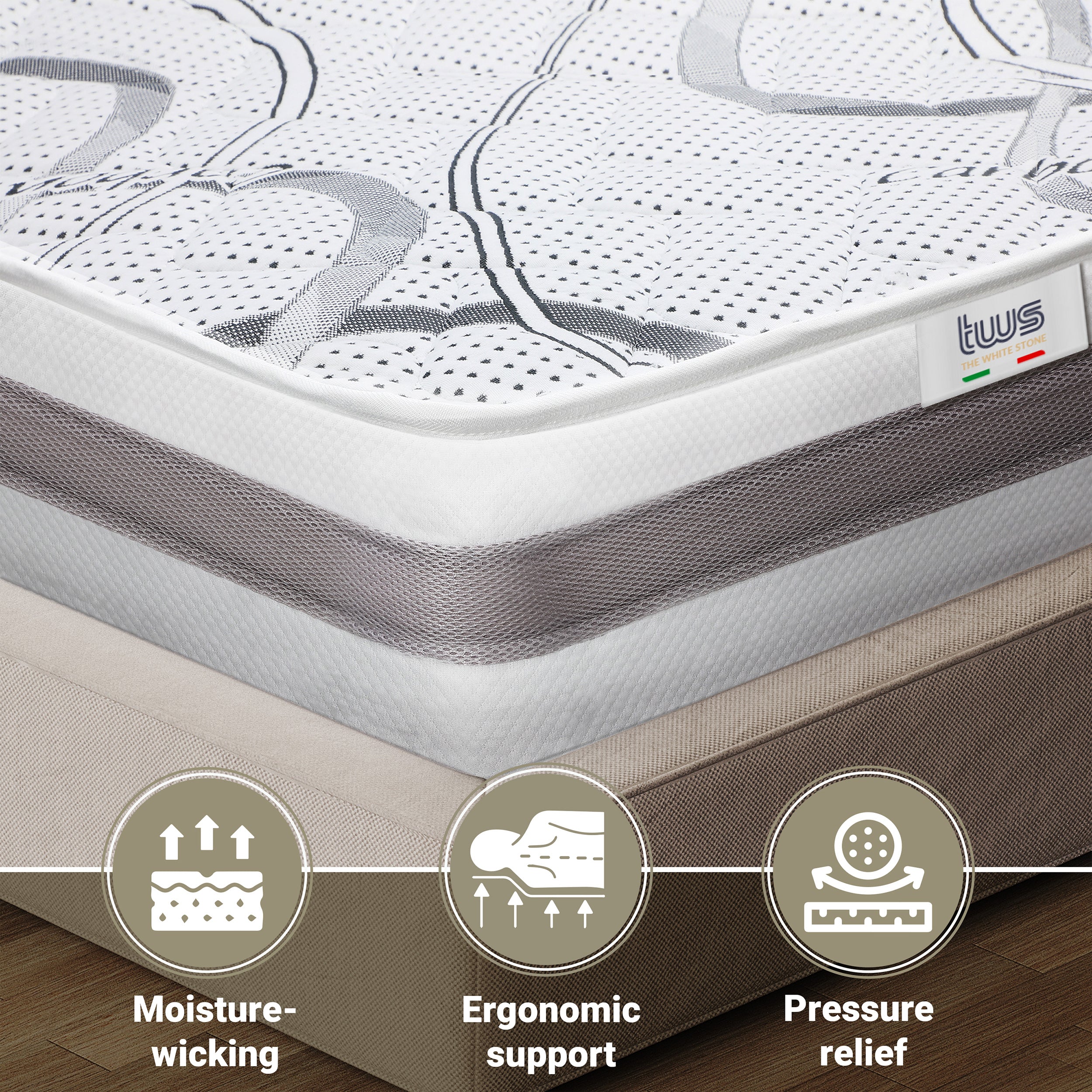 The White Stone Matelas Orthopédique 90x150 cm Fermeté Moyenne | Hauteur 20 cm | Tissu Hypoallergénique e