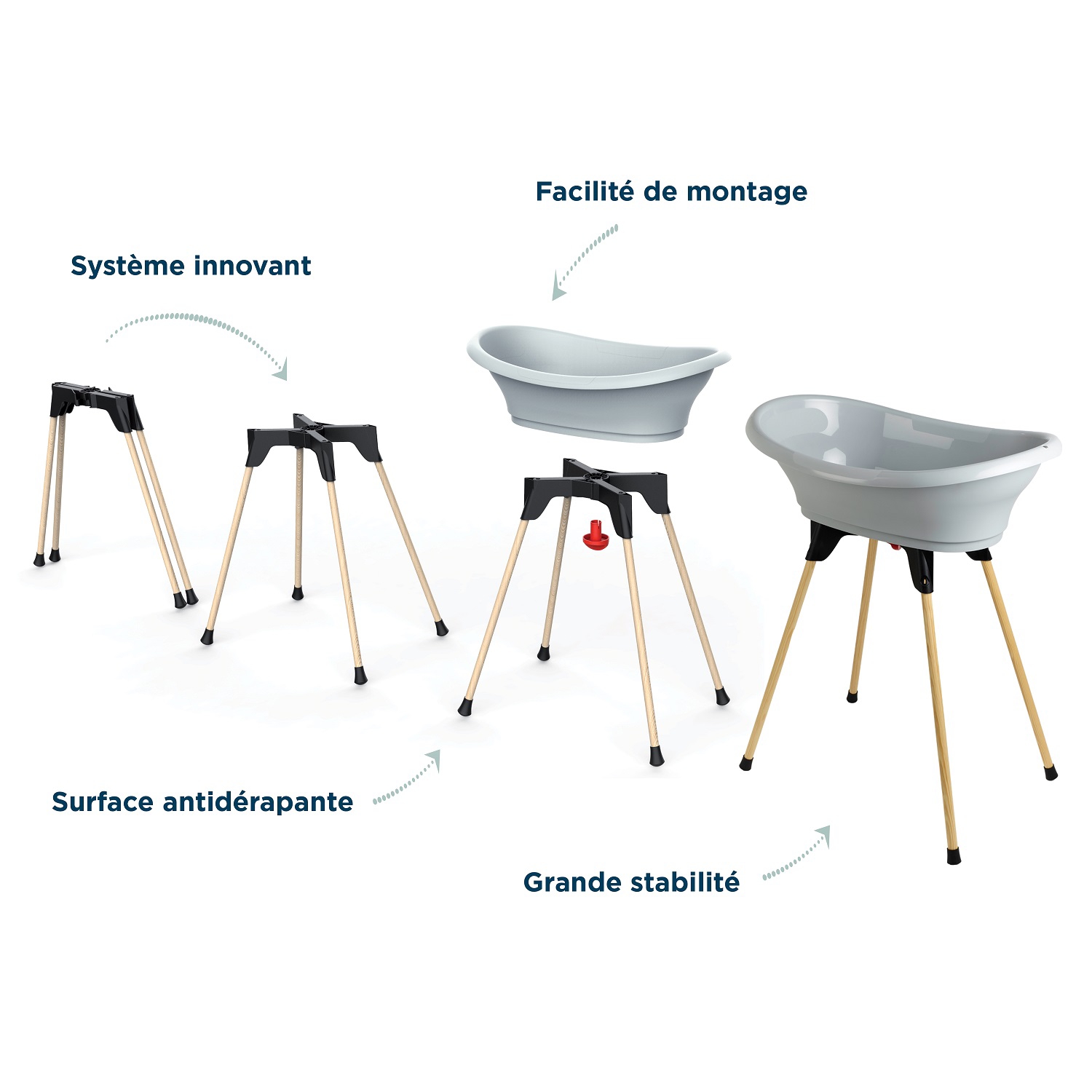 La baignoire peut être utilisée sur le support jusqu’à ce que l’enfant essaie de se tenir debout tout seul.