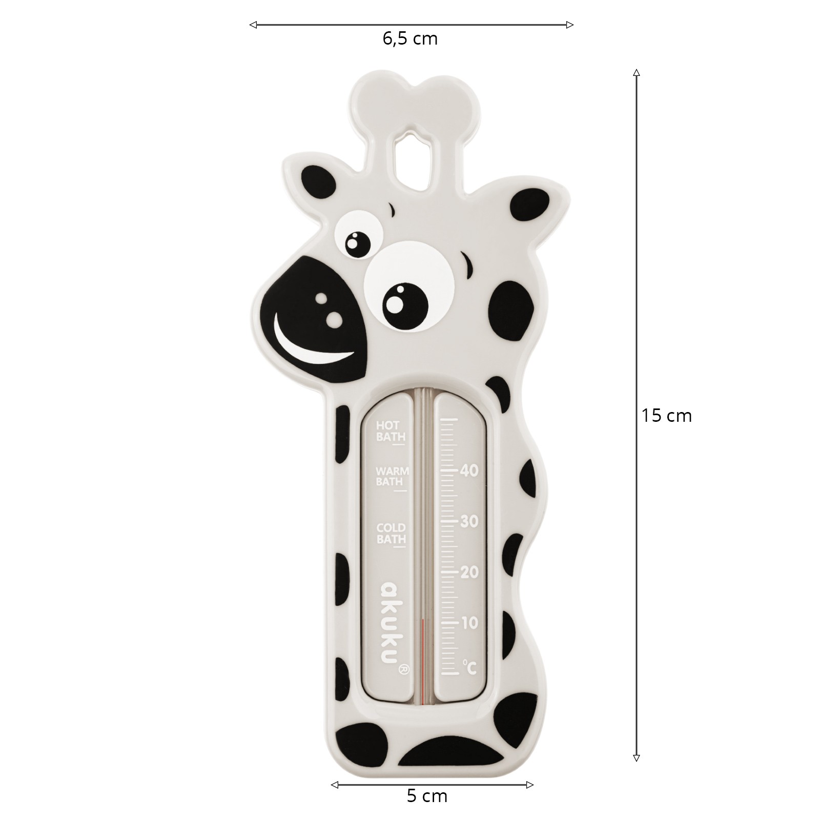 Ce thermomètre permet de mesurer de manière précise la température de l'eau du bain de votre enfant. Il fonctionne aussi hors de l'eau. Ce thermomètre en forme de girafe dispose d'une graduation précise et de 3 plages de température qui indiquent si le bain est froid, tempéré ou chaud.