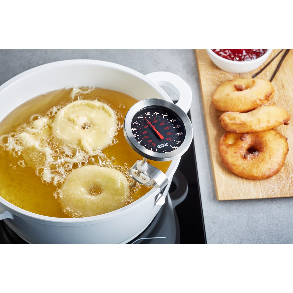 Rôti, friture ou conserves : la graduation du thermomètre de cuisine a l'avantage de fournir une température précise pour des utilisations différentes