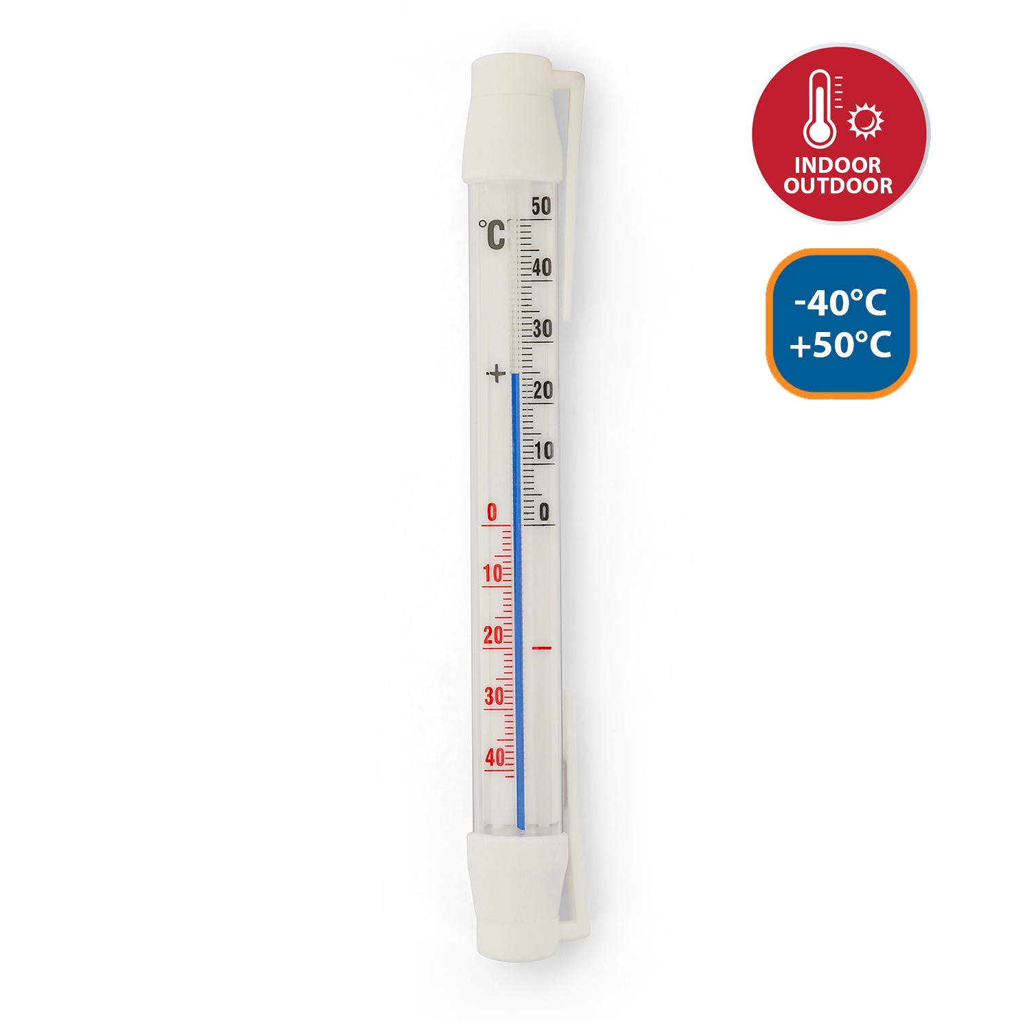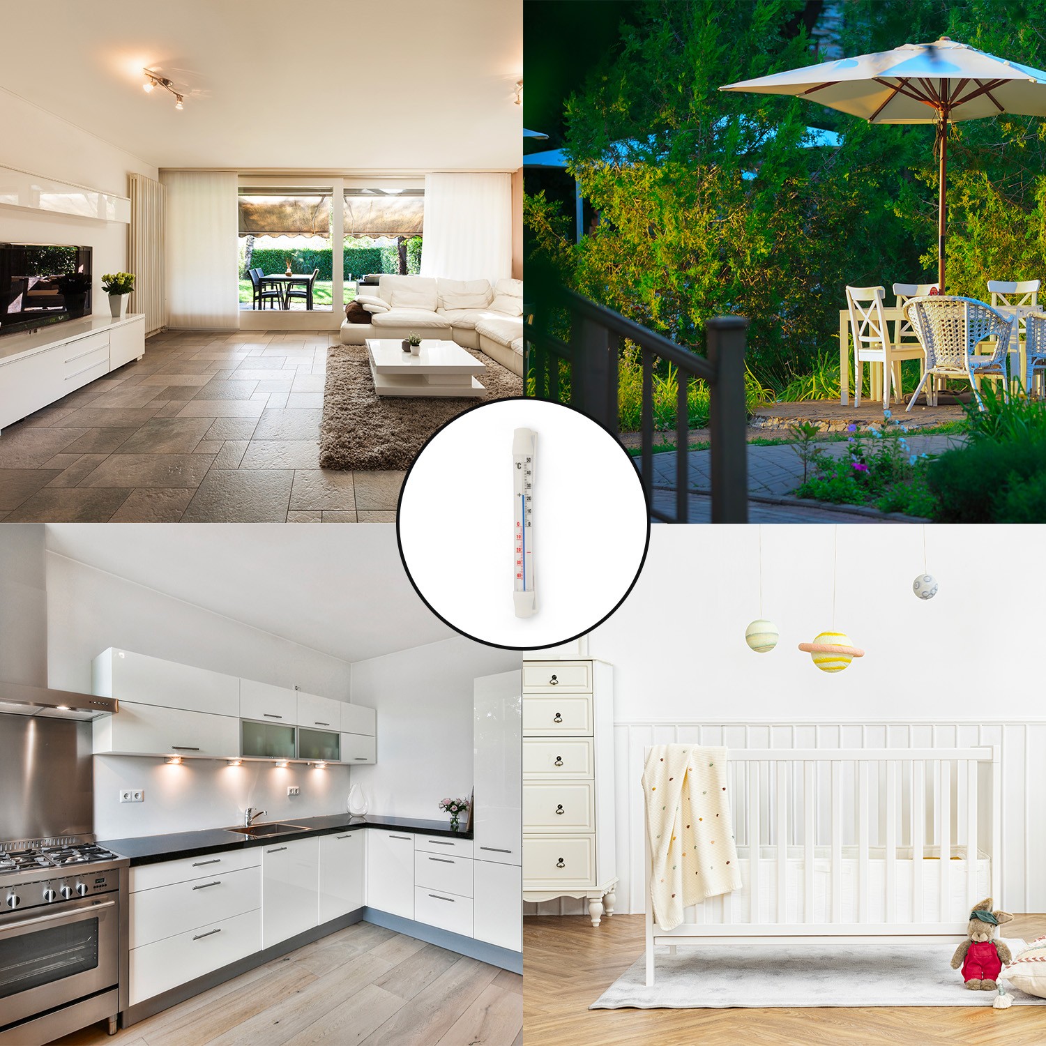 Thermomètre analogique Velamp pour intérieurs, extérieurs et jardins de couleur blanche. Longueur : 20cm. La solution polyvalente. La solution pratique et simple associée à un look sobre donne au thermomètre la possibilité d'être utilisé de manière polyvalente et décorative. Vous pouvez utiliser notre thermomètre de manière polyvalente. Et surtout conçu pour être à l'extérieur.L'affichage de la température de l'échelle mécanique est de -40 à + 50 ° C. Le thermomètre polyvalent est en plastique blanc résistant aux intempéries. Convient pour l'extérieur et pour tous les espaces de vie: thermomètre de salle de bain, thermomètre de salon, thermomètre de chambre d'enfant, thermomètre de cuisine ou même comme thermomètre de jardin extérieur. Dimensions : 20,5 x 4,5 x 0,9 cm. Notre thermomètre en plastique peut être suspendu. Velamp : Qualité depuis 1906.