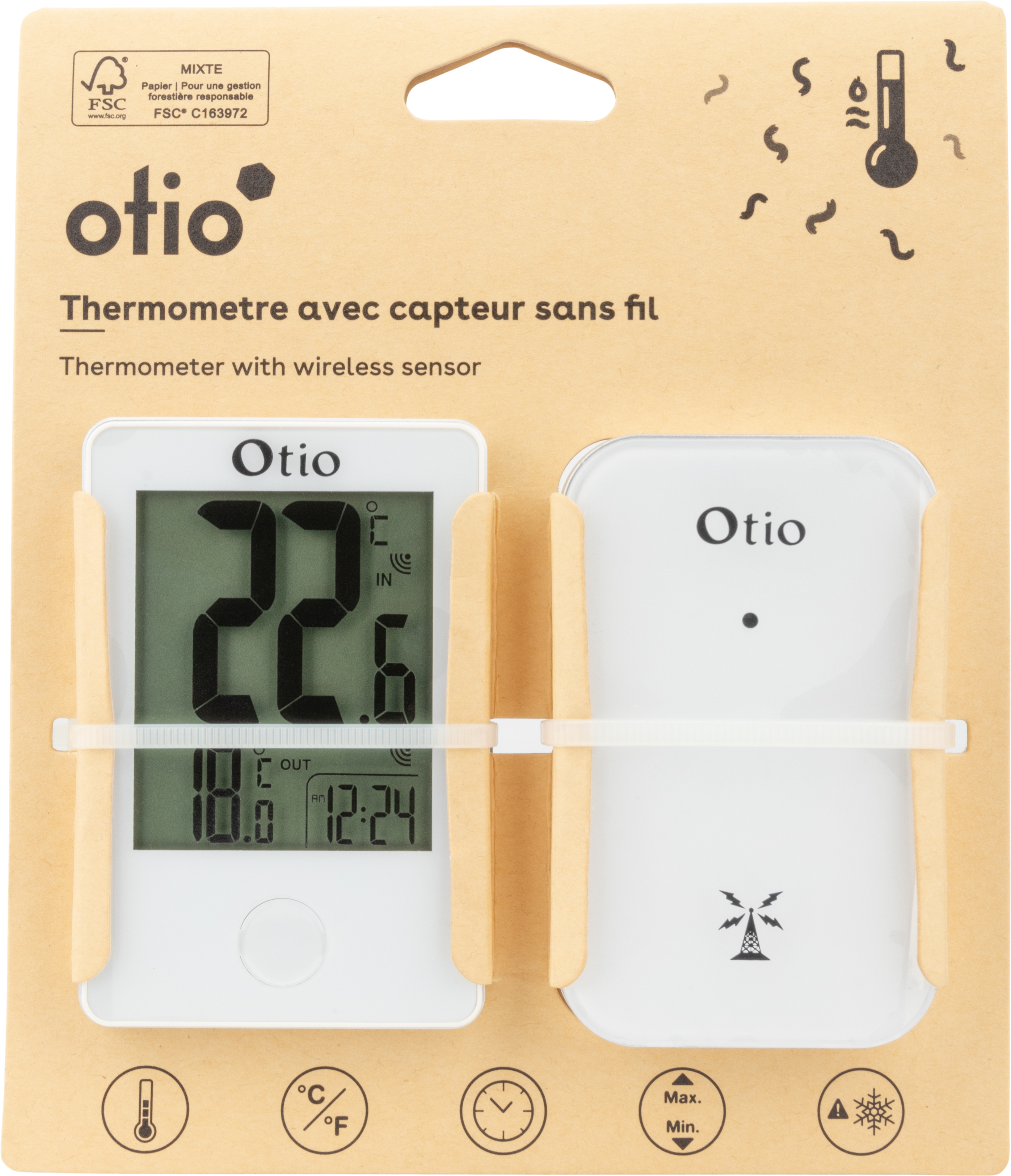Caractéristiques du thermomètre extérieur intérieur sans fil Otio :