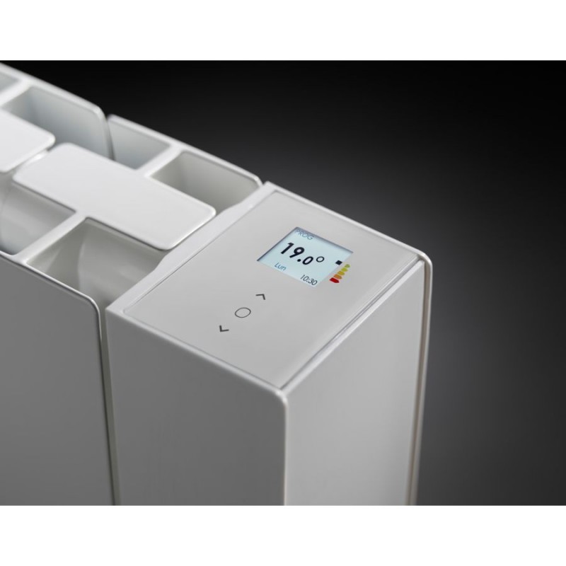 Plus produit Chaleur douce par fluide caloporteur, commande digitale tactile avec programmation intégrée, détection automatique ouverture/fermeture de fenêtre, affichage consommation kWh, connectivité CozyTouch (bridge en option), montage mural, finition mate, conçu et fabriqué en France