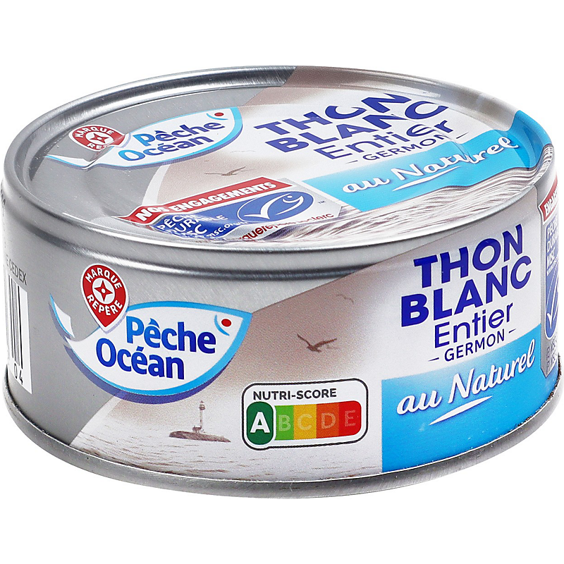 | Origine des principaux ingrédients | THON BLANC PECHE EN : OCEAN ATLANTIQUE NORD-EST, PACIFIQUE NORD-EST, PACIFIQUE CENTRE-OUEST, PACIFIQUE CENTRE-EST ET/OU PACIFIQUE SUD-OUEST. |