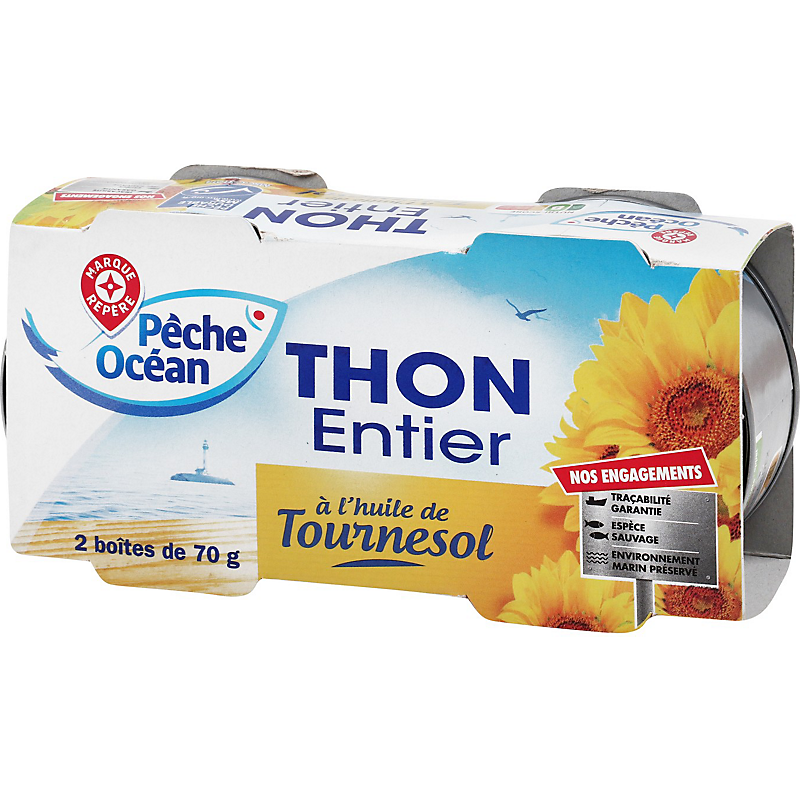 | Origine des principaux ingrédients | TOURNESOL ORIGINE : EUROPE, THON PECHE EN : OCEAN ATLANTIQUE CENTRE-EST, ATLANTIQUE CENTRE-OUEST, ATLANTIQUE SUD-EST, ATLANTIQUE SUD-OUEST, INDIEN EST, INDIEN OUEST, PACIFIQUE CENTRE-EST, PACIFIQUE CENTRE-OUEST, PACIFIQUE SUD-EST ET/OU PACIFIQUE SUD-OUEST*, TOURNESOL ORIGINE : EUROPE, THON PECHE EN : OCEAN ATLANTIQUE CENTRE-EST, ATLANTIQUE CENTRE-OUEST, ATLANTIQUE SUD-EST, ATLANTIQUE SUD-OUEST, INDIEN EST, INDIEN OUEST, PACIFIQUE CENTRE-EST, PACIFIQUE CENTRE-OUEST, PACIFIQUE SUD-EST ET/OU PACIFIQUE SUD-OUEST* * SELON LES APPROVISIONNEMENTS ET/OU LES CARACTÉRISTIQUES GUSTATIVES RECHERCHÉES |