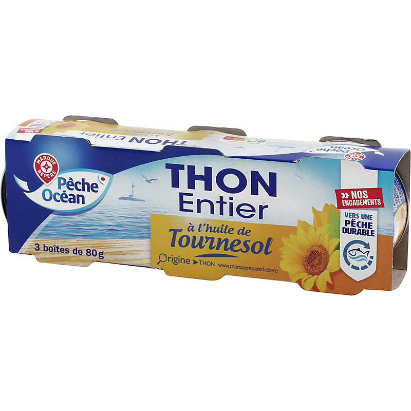 | Origine des principaux ingrédients | THON PECHE EN : OCEAN ATLANTIQUE CENTRE-EST, ATLANTIQUE CENTRE-OUEST, ATLANTIQUE SUD-EST, ATLANTIQUE SUD-OUEST, INDIEN EST ET/OU INDIEN OUEST*, TOURNESOL ORIGINE : EUROPE, THON PECHE EN : OCEAN ATLANTIQUE CENTRE-EST, ATLANTIQUE CENTRE-OUEST, ATLANTIQUE SUD-EST, ATLANTIQUE SUD-OUEST, INDIEN EST ET/OU INDIEN OUEST*, TOURNESOL ORIGINE : EUROPE, THON PECHE EN : OCEAN ATLANTIQUE CENTRE-EST, ATLANTIQUE CENTRE-OUEST, ATLANTIQUE SUD-EST, ATLANTIQUE SUD-OUEST, INDIEN EST ET/OU INDIEN OUEST*, TOURNESOL ORIGINE : EUROPE, THON PECHE EN : OCEAN ATLANTIQUE CENTRE-EST, ATLANTIQUE CENTRE-OUEST, ATLANTIQUE SUD-EST, ATLANTIQUE SUD-OUEST, INDIEN EST ET/OU INDIEN OUEST*, TOURNESOL ORIGINE : EUROPE * SELON LES APPROVISIONNEMENTS ET/OU LES CARACTÉRISTIQUES GUSTATIVES RECHERCHÉES |