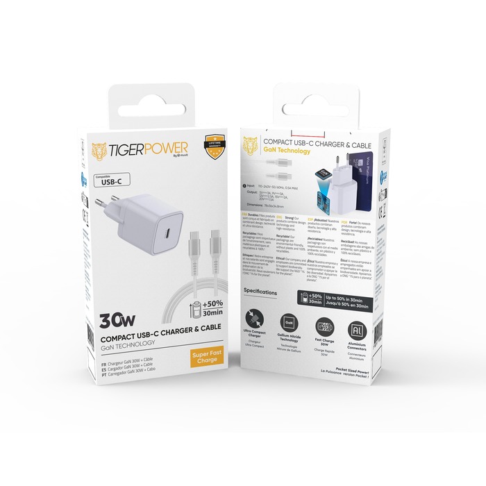 | Libellé | Tiger Power Pack Chargeur Secteur 30W + Cable Usb-C |