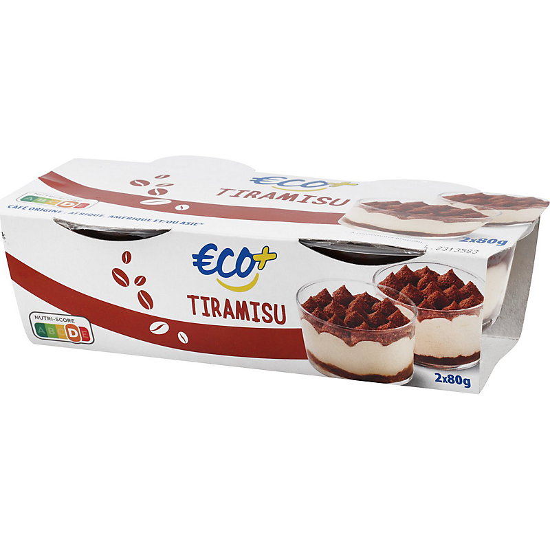 Ingrédients : Lait écrémé réhydraté (origine : Europe) ; sirop de glucose ; eau ; biscuit cuiller 10 % (farine de blé œuf ; sucre ; eau ; protéines de lait ; poudres à lever : E450 (dont blé), E500 (dont blé)) ; huile de coco ; sucre ; protéines de lait mascarpone 2,9 % (crème (origine : Europe), correcteur d’acidité : E270) ; alcool ; jaune d'œuf ; stabilisant : E420 ; saupoudrage de cacao 1,2 % (cacao 0,5 %, dextrose, amidon de blé, sucre, beurre de cacao) ; vin marsala 1,1 % ; café soluble (café origine : Afrique, Amérique et/ou Asie*) 0,6 % ; épaississants : E401, E410, E415 ; émulsifiant : E471 ; arômes naturels ; amidon de tapioca.